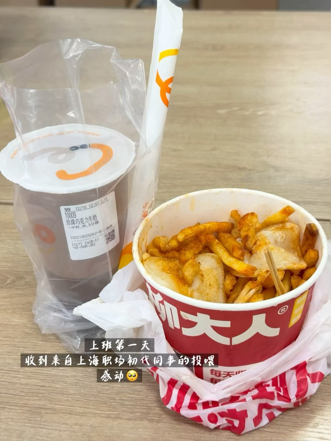 gap半年今天正式开始上班我前同事特意来我新公司给我送奶茶和鸡柳大人把我感动的不
