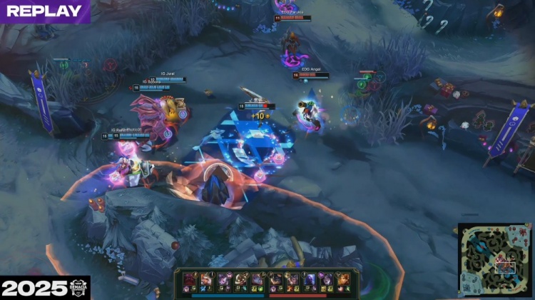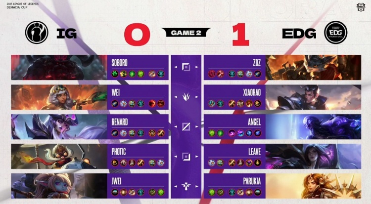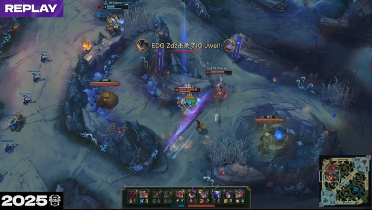 [8:31]巢虫团,双方点到为止,EDG拿到两条巢虫。随后上路Leave卡莎遭iG三人逮捕,Sorobo奥恩叫羊配合Wei奇亚娜帮助Photic飞机拿到一血。