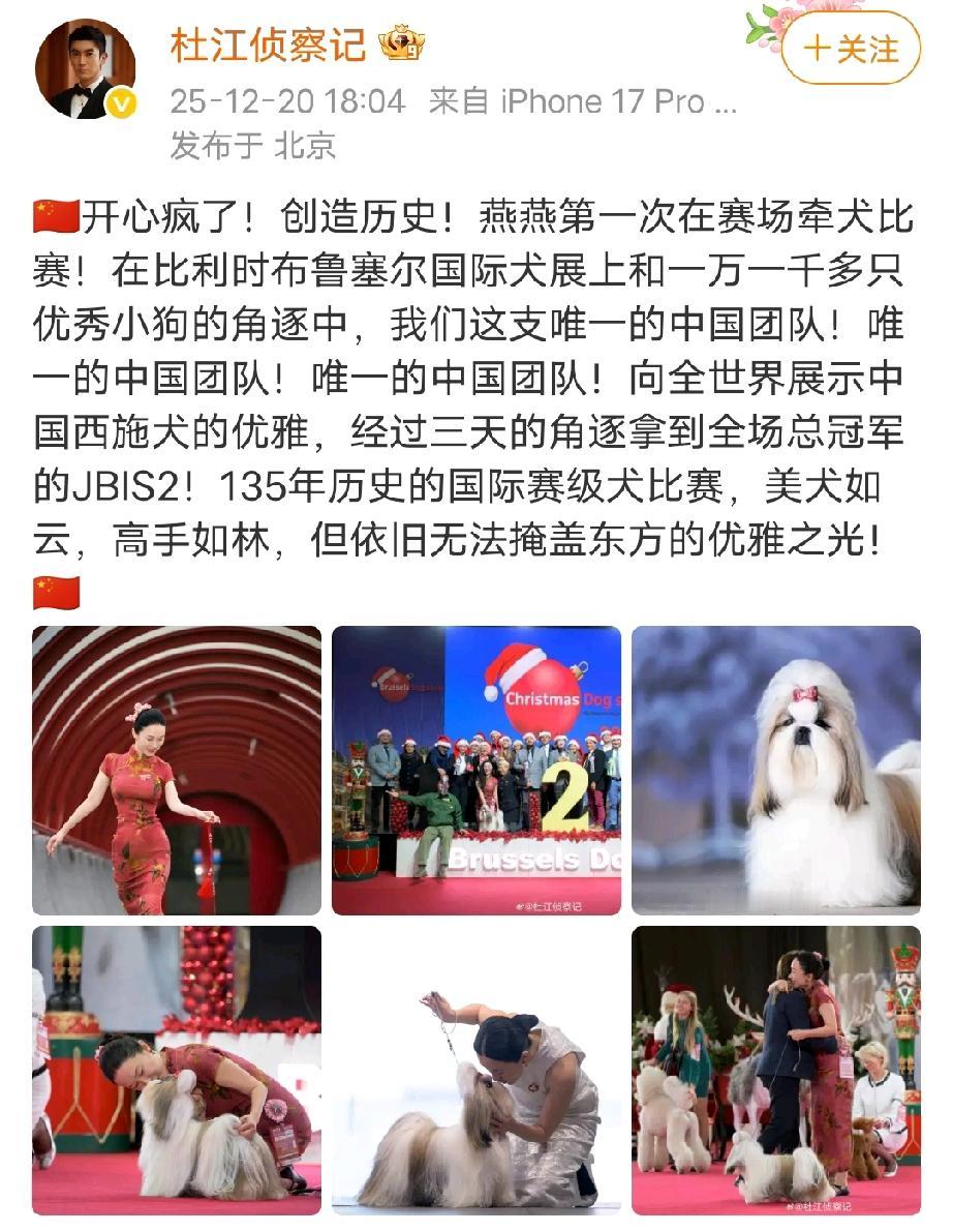 霍思燕穿旗袍牵犬比赛,精修图和生图差别还是挺大的。霍思燕这次在国际犬展上获奖,老公杜江激动得赶紧分享,照片中的霍思燕穿着红色印花旗袍,身材凹凸有致,并不像网上传的那般胖。 不过没修的生图倒是没这么瘦,肚子和胳膊上的赘肉还是挺明显的,霍思燕穿旗袍还是很好看的,很有气质,但要跟年轻时候的她对比,还是以前好看得多,霍思燕这几年颜值确实下滑不少,尤其是身材,彻底不管身材管理的事了。