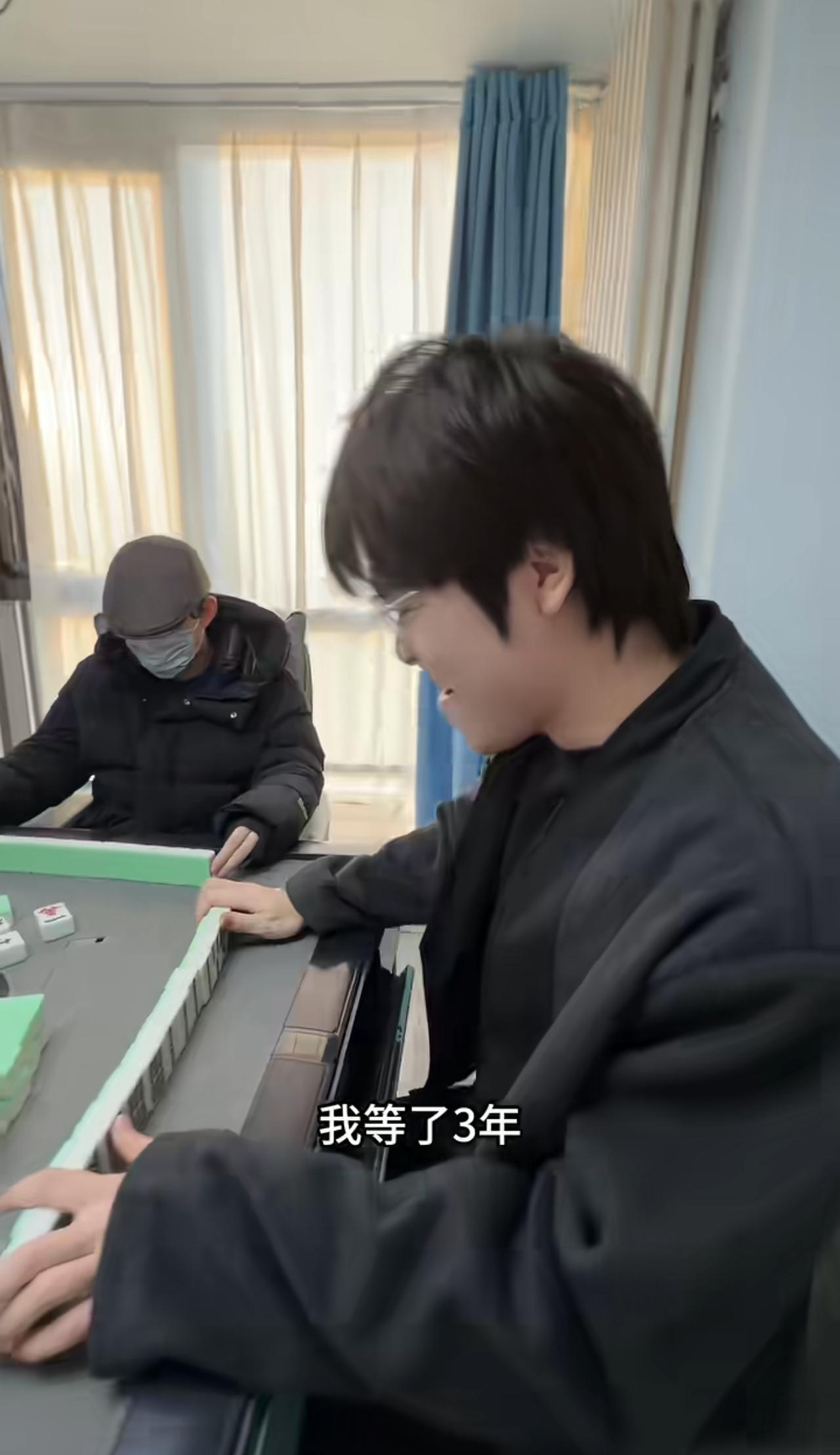 棋坛战神离棋枰, 麻桌前蹲眼放明。 三年憋个清一色, 摸张四务喊“必赢”!盘棋 棋大师 棋大爷 棋坛王者