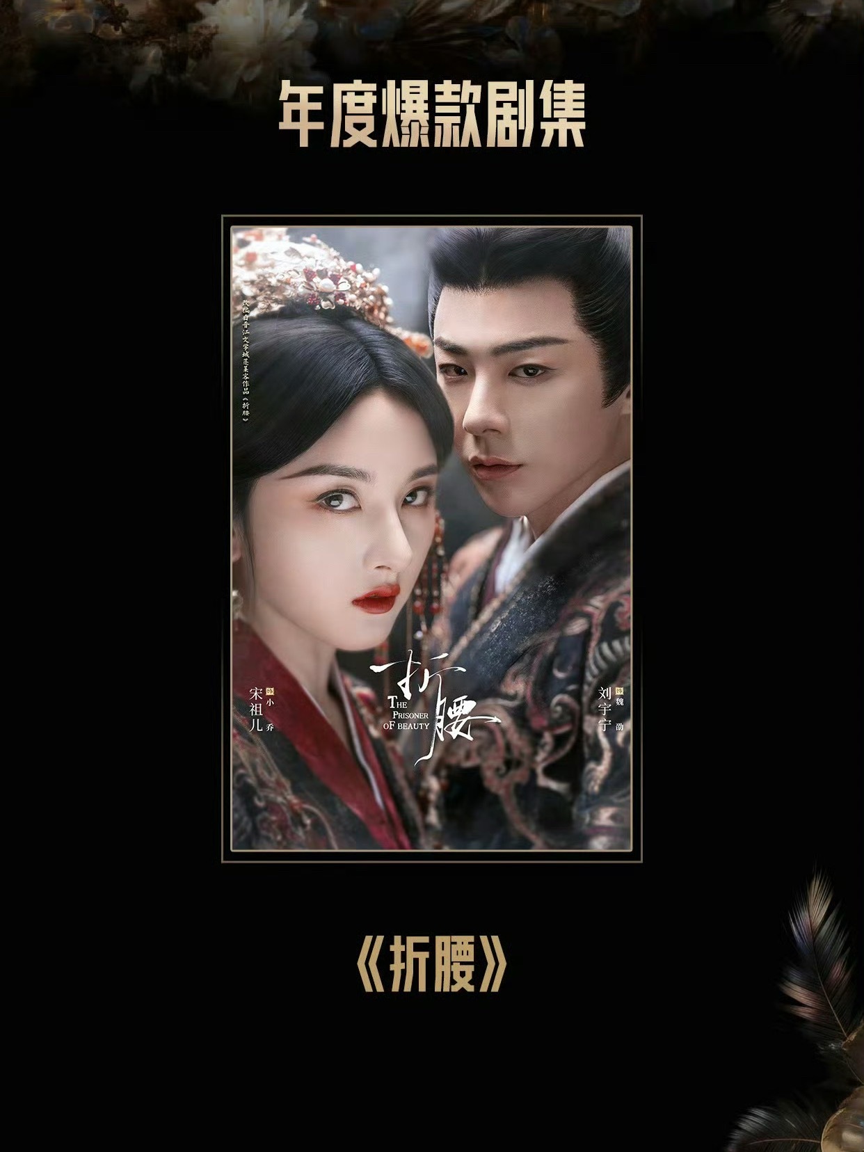 恭喜刘宇宁主演的折腰荣获2025腾讯年度爆款剧集