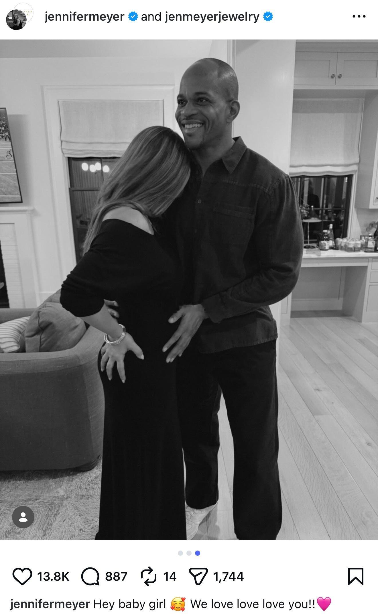 Tobey Maguire的前妻、48岁的珠宝设计师Jennifer Meyer官宣怀孕,即将迎来她跟34岁的未婚夫Geoffrey Ogunlesi的第一个孩子👇(她跟前夫Tobey的两个孩子,女儿19岁儿子16岁)