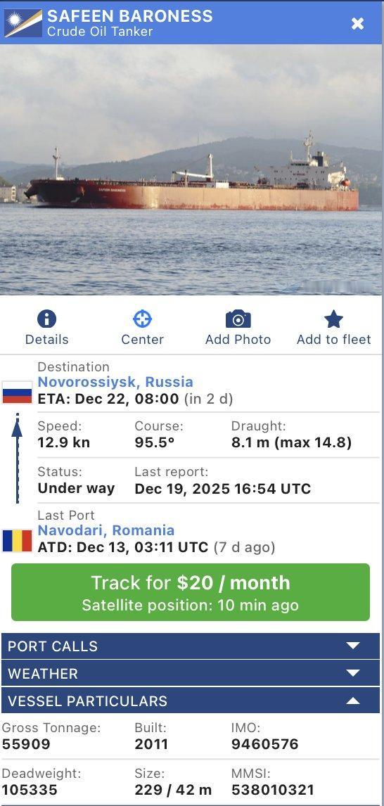 当地时间2025年12月20日,美国方面传出消息,美国卫星在12月19日的卫星影像中,检测到与船只位置匹配的热信号,显示另一艘俄罗斯影子舰队油轮可能在黑海起火,大火燃烧了两天。按照乌克兰方面的说法,过去24小时内,俄罗斯的第二艘“影子舰队”油轮遭到乌克兰袭击,这使得一天内,俄罗斯已有三艘船只被袭击,包括两艘油轮和一艘海上巡逻舰。有未经证实的报道称,前往俄罗斯新罗西斯克港的油轮,萨芬男爵夫人号在黑海失火。据称,萨芬男爵夫人号油轮是从俄罗斯到罗马尼亚,通过黑海。显然在通过黑海,奔向北约国家,罗马尼亚的时候,遭到了黑手,引发了爆炸和大火。由于涉及北约国家,还是乌克兰邻国罗马尼亚的石油能源资产,乌克兰国家安全局,乌克兰情报局没有认领这个战绩,也不敢认领,毕竟发动这种无限制袭船战,打击的目标并不是北约各国,乌克兰还指望欧洲国家继续掏钱,支持自己将战争打下去。 在19日,乌克兰国家安全局发布了一段画面,展示了乌克兰安全局发射无人轰炸机,在地中海中立水域袭击油轮。据报道,这艘涉及运输俄罗斯石油的油轮,遭受了严重损坏。这艘船是悬挂阿曼国旗的“QENDIL”号油轮,总吨位61991吨。按照乌克兰公开的画面显示,一架乌克兰无人轰炸机接近这艘油轮,这架无人轰炸机在油轮上方后,投下的炸弹,击中了甲板,炸穿了甲板,炸中了运输的石油。据称乌克兰国家安全局出动了巴巴嘎夏无人轰炸机,由于这种无人机按照星链卫星通信系统,可以飞行100公里,基本没有任何问题。乌克兰方面声称,无人机从希腊境内一个起飞,这明显要把希腊,北约拖下水。现在的证据显示,是乌克兰船只,或者乌克兰当局雇佣的船只,发射无人轰炸机,在航线位置等到俄罗斯油轮,发现俄罗斯油轮进入自己无人机打击射程后,开始进行无人机轰炸。并且,爆炸事发海域,离希腊海岸200多公里。按照乌克兰这种农业植保无人机的航程算,肯定是用附近的民船起飞的。 西方和乌克兰这是要打开潘多拉魔盒,毕竟,俄罗斯一向以牙还牙以眼还眼,而且世界上每一片大海下面,都有可能潜行着俄罗斯海军的核潜艇。乌克兰,西方,那种“只能我打你,你不能打我”的思维,又跳动起来了,袭击俄罗斯核电站、袭击俄罗斯炼油厂,再到袭击俄罗斯油轮,他们是觉得自己没有油轮,货轮,还是觉得俄罗斯没有反击能力,又或者,他们根本不在意能源安全本身,等俄罗斯反击时就可以跳出来“谴责”了,这倒像西方政客干的事。乌克兰安全局,乌克兰强报价在地中海中立水域干这事,只能体现乌克兰目前所面临的压力和困境有多大,大到被逼无奈学也门“拖鞋军”,也门胡塞武装,而乌克兰军队在正面战场上,已经到了无法做出任何回应的地步。