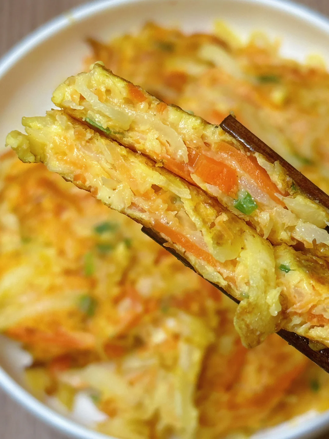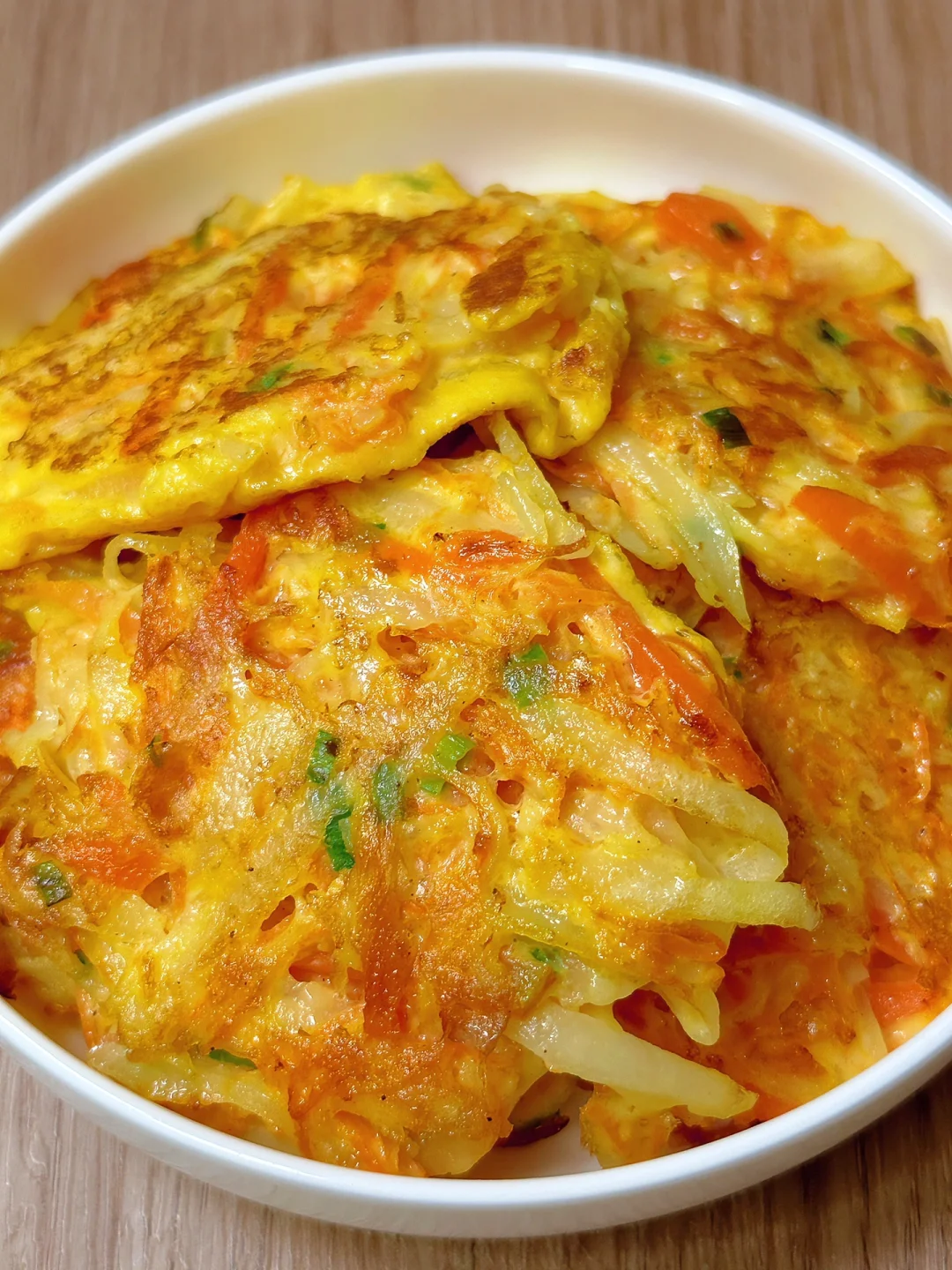 破防了家人们,这样做出来是真的泰香了~家里有土豆胡萝卜的姐妹们,快去去试试这个低卡鸡蛋饼真的巨好吃,咸香可口,香甜软糯,当早餐也是很OK的,做法简单,好吃又掉秤,饱腹还强,一个饼才20大卡,[暗中观察R]减脂期的姐妹们可以放心炫~ [种草R]食材:鸡蛋、土豆、胡萝卜、葱花(2~3人份) [种草R]做法:如图所示~ [飞吻R]2023年最后115天,让我们一起变美变瘦! [斜眼R]更多的减脂餐在往期笔记哦~