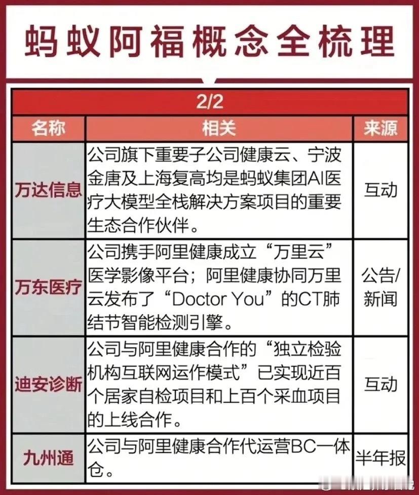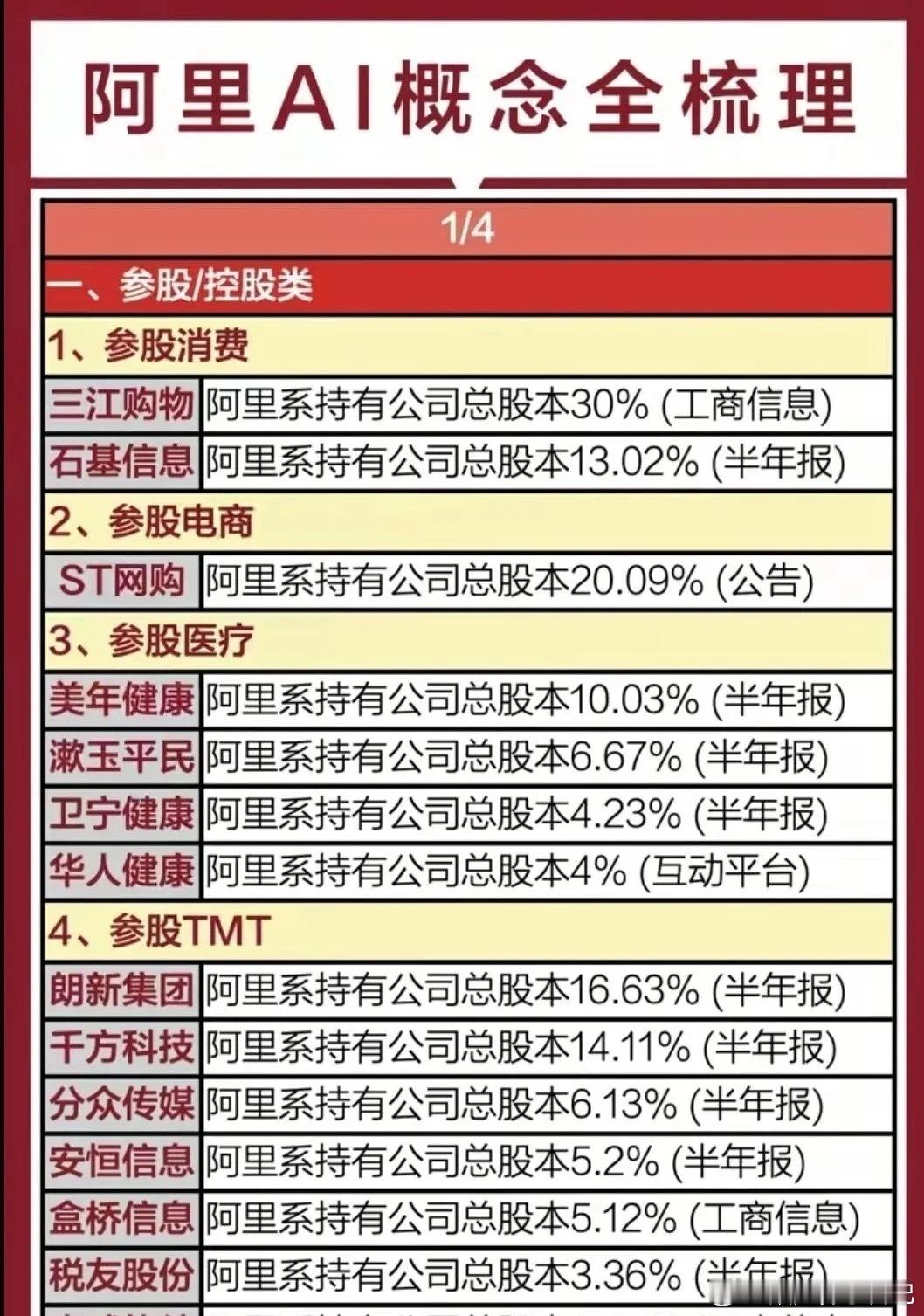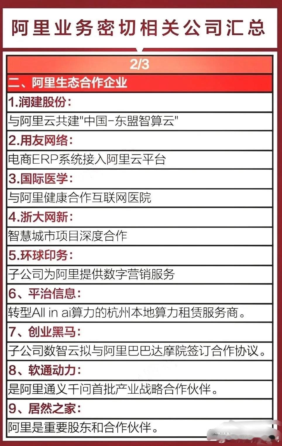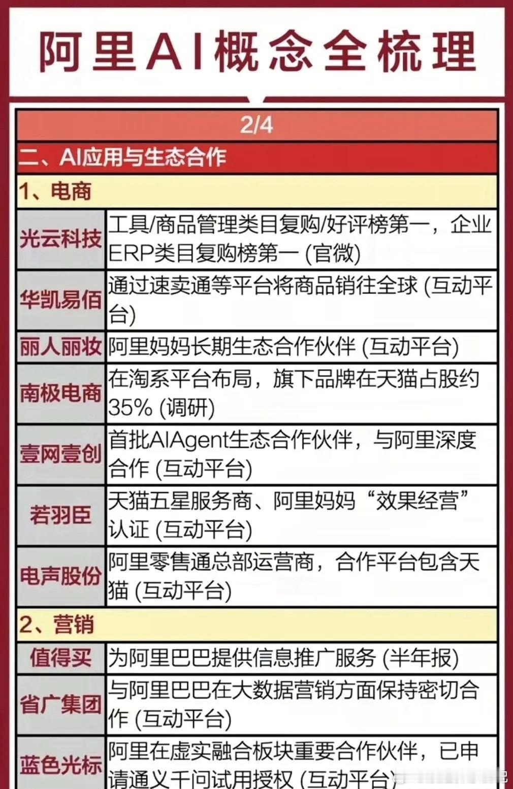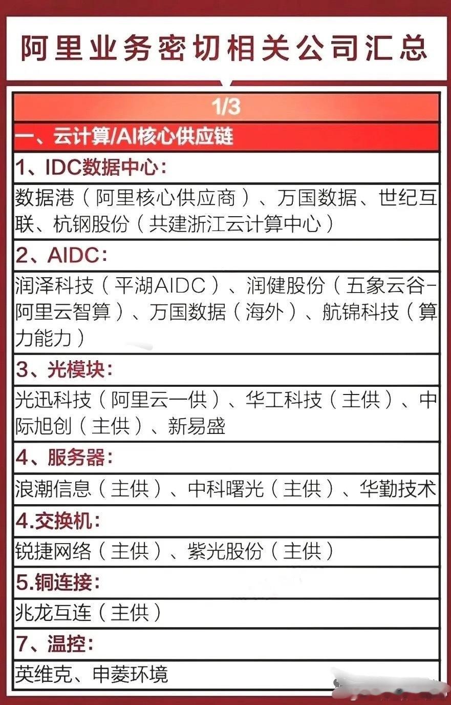 阿里AI题材全梳理:三大主线掘金生态链机遇周末重磅消息落地,12月20日阿里国际站于梧州举办AI赋能宝石首饰跨境电商交流会,以技术之力助推传统产业出海提速。与此同时,蚂蚁集团旗下阿福AI健康APP月活突破1500万,跻身国内AI应用前五、健康类赛道榜首,标志着阿里系AI布局在To B与To C端同步开花。依托云计算夯实的技术底盘,阿里正构建起覆盖AI芯片、云服务、医疗大模型、健康服务平台的完整生态体系,通过持股与深度合作模式,打通实体医疗资源与硬件厂商链路,实现技术能力与产业场景的高效嫁接。从电商巨头到科技巨头的转型路径下,阿里系AI生态链蕴藏着清晰的投资主线,核心标的可分为三大阵营:1. 阿福AI健康概念:以美年健康、万东医疗为代表,依托阿里医疗大模型与线下医疗资源的协同优势,深度受益于AI健康服务的商业化落地;2. 阿里算力概念:数据港、润泽科技等IDC龙头,承接阿里云计算与AI算力扩张带来的机柜需求增量,是算力基础设施的核心受益者;3. 阿里AI概念:三江购物、石基信息等生态伙伴,分别在新零售、企业级服务领域与阿里AI技术深度融合,共享数字化转型红利。从跨境电商AI赋能到AI健康赛道领跑,阿里的AI棋局正层层铺开,生态链上的核心标的有望迎来价值重估机遇。AI算力板块阿里AI产业链