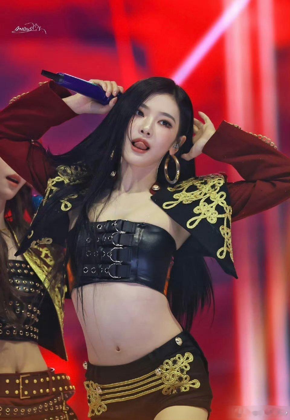 但凡张天爱身上有一点赘肉都穿不了这个衣服