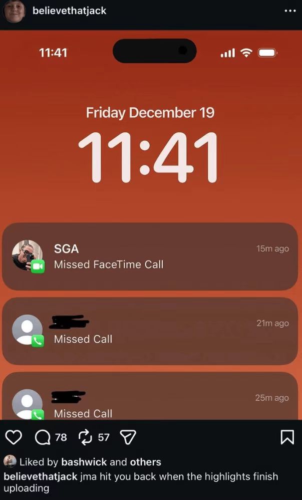 不久前森林狼击败雷霆队,让亚历山大吃到了他最近一周内的第二场败仗。 不过在比赛结束之后,爱德华兹在社交媒体上发布了一张有趣的图片。 图中能够看到,SGA正在试图邀请他进行视频聊天。 对此爱德华兹配文到,稍等一下,等位把今天比赛的精彩集锦都上传完了,我马上就给你回过去。 爱德华兹在和雷霆比赛最后的一攻两防,最终彻底锁定了胜局。尤其是对亚历山大的封盖,视觉效果直接拉满。 所以在爱德华兹社交媒体的下面留言中,很多人都表示,如果接了视频,亚历山大第一句一定会是:嗨,兄弟,你也太不给面子了!