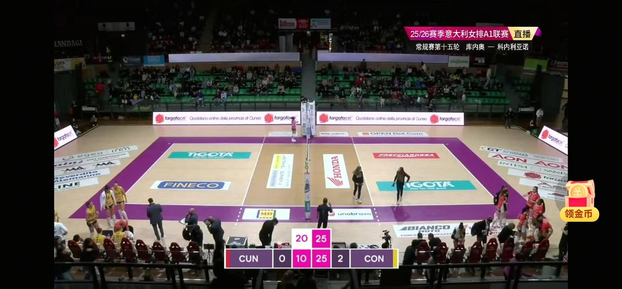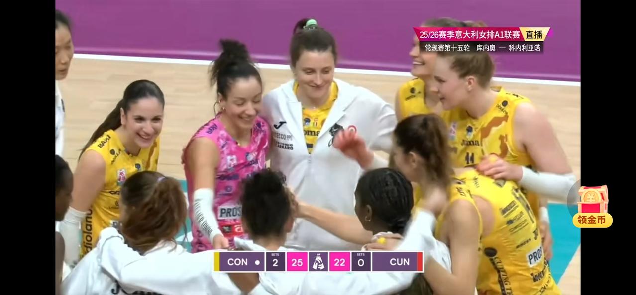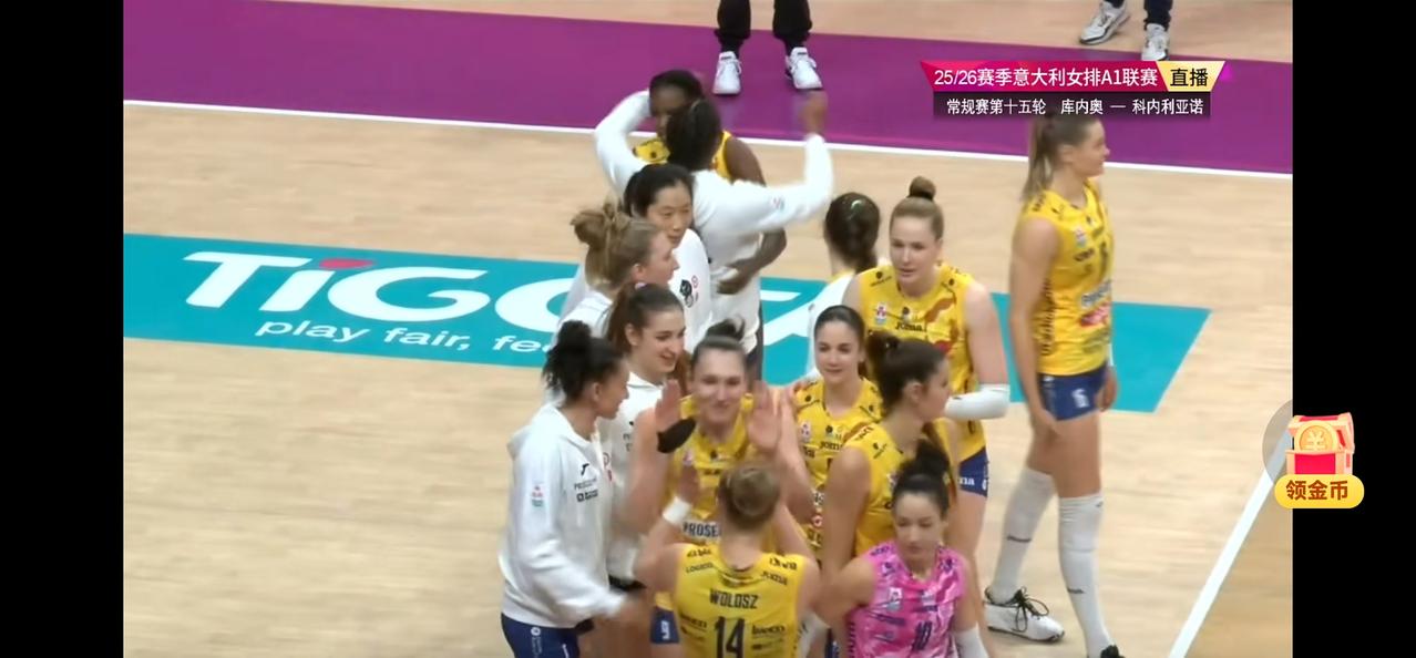 在今天凌晨结束的2025-2026赛季意甲女排联赛第十五轮的一场比赛中,朱婷效力的科内利亚诺比较轻松的以3:0战胜库内奥,这场比赛虽然对手实力较弱,但经历了世俱杯失冠后,主教练桑塔雷利还是比较谨慎 ,派出了除了朱婷和加比外的全部主力阵容出战,最终科内以25:20、25:10、25:22获胜。