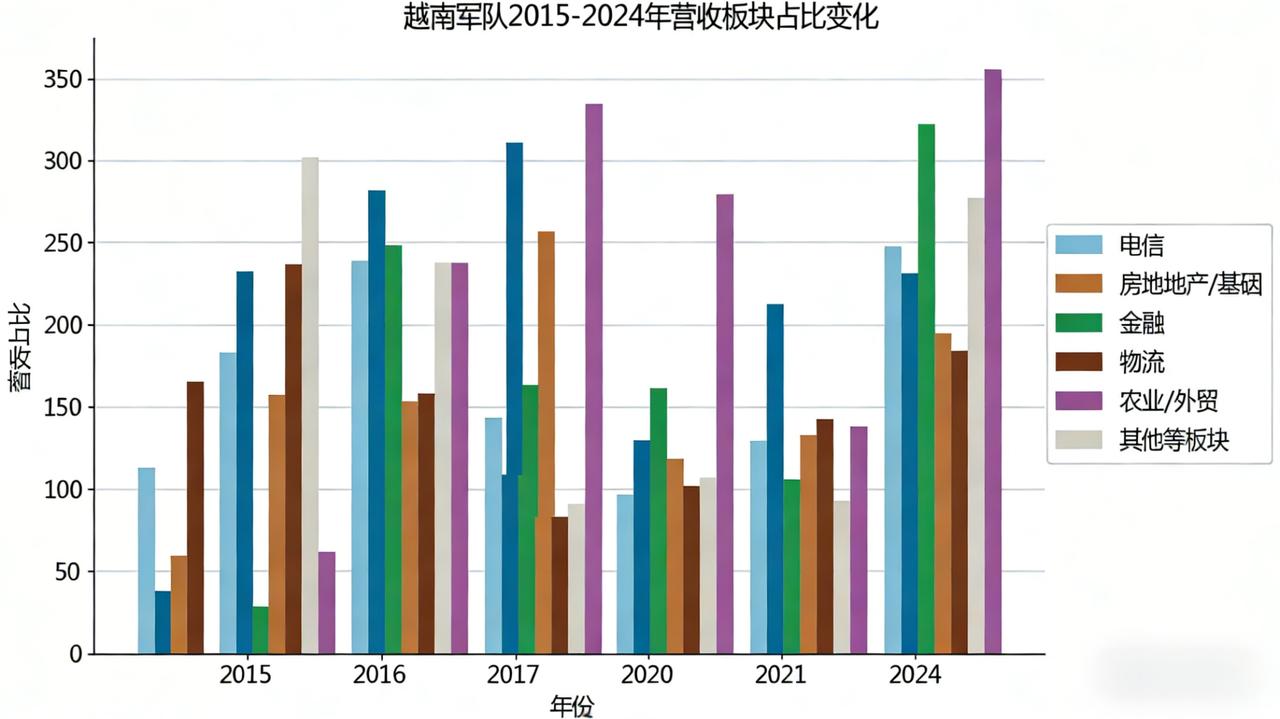先说结论,越南不解决军队的经商问题,永远不可能成为发达国家。 2016年以前,越南军队经商主要的营收板块还放着电信行业。 但是2016年之后,越南军队已经不满足于电信行业带来的营收了,而是将手伸到了房地产、金融、农业等各项领域。 军队既掌握着枪杆子,又掌握着钱袋子,甚至还掌握着粮食生产,迟早会变成一个由军政府掌控的国家。 纵观全世界,有哪一个国家靠着军队经商能让国家变成发达国家的?