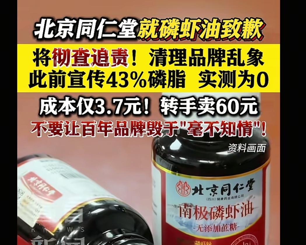 成本3.7元卖60元,溢价近17倍,宣称“99%高纯南极磷虾油”,实际磷脂含量为0,生产商安徽哈博药业承认未添加磷虾油,就是普通油脂灌装。上海消保委约谈时,经销商同仁堂(四川)健康药业称不知情,生产商说按要求生产,现场一问三不知、互相甩锅,被认定涉嫌故意造假 。 网友吐槽像当年中华鳖精,一只王八熬20吨,最后发现没放王八,其实就是挂羊头卖狗肉。同仁堂、修正、仁和这些贴牌门槛低、一证多套、重营销轻研发。仁和曾销售费是研发费26倍,假货劣质品泛滥,直接透支品牌价值。 包装放大品牌名声、利用相似商标,让消费者误认为是嫡系正品。这种事根本不是营销,是赤裸裸的欺诈。老品牌若再放任贴牌不监管,早晚把百年招牌砸手里。