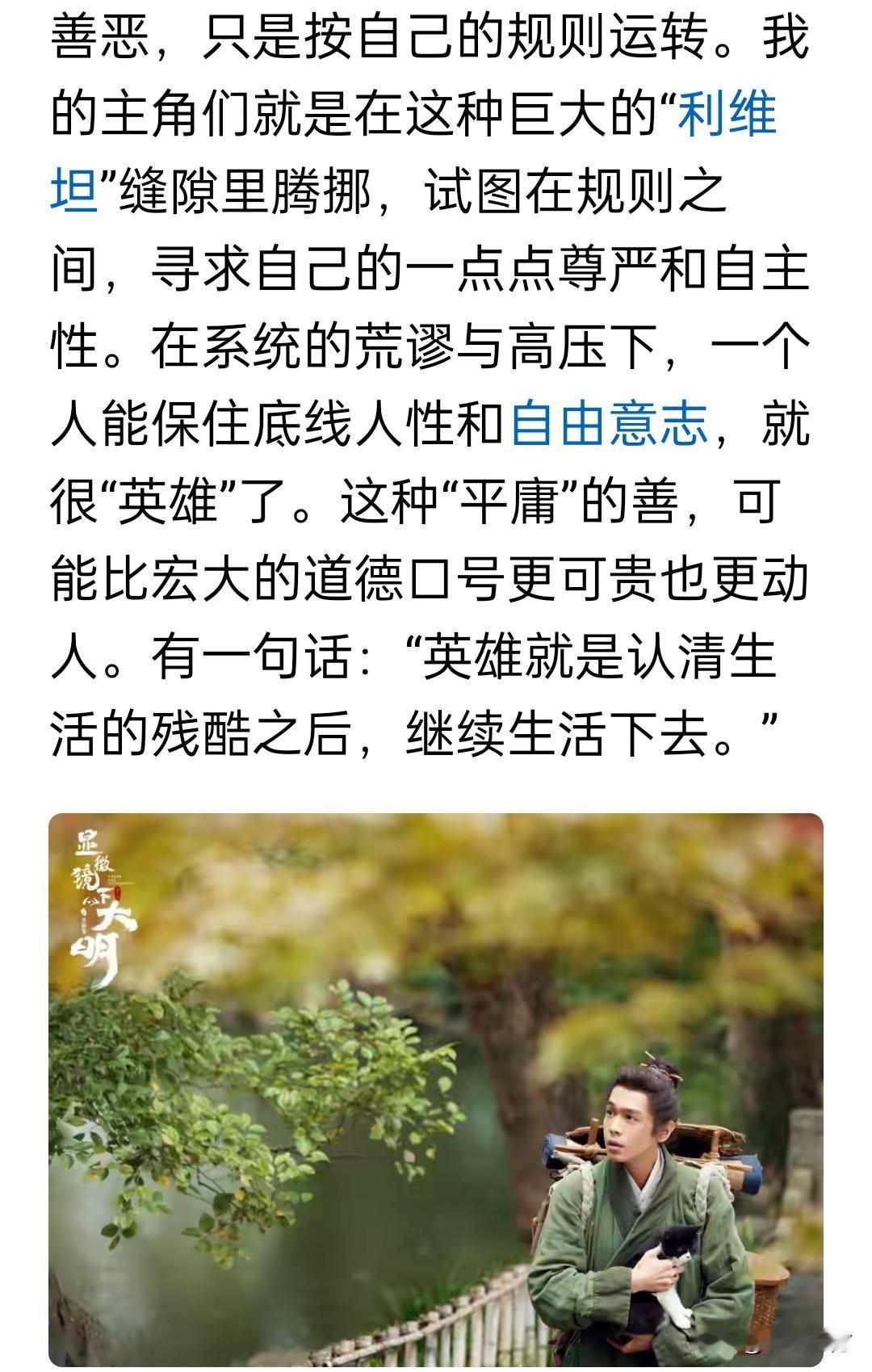 畅销书作家马伯庸说“平庸的善”是一种英雄主义,是说小人物用微薄之力对他人的推举,对破烂世界的修补,对机械规则的抗争。虽然从体量上来看可能微不足道,但从比例上来说或许他们已经耗尽全力,所以他们更象是“英雄”。 每一种善都应该被尊重,但大人物的善更容易被看到,也相对轻松,而“庸常的善”才更需要被发现,被善待。“圣人无情,以百姓为刍狗”,升斗小民之间的相互扶持与关爱,才能让大家挣得为人的空间与尊严,不再是空如无物的“刍狗”。