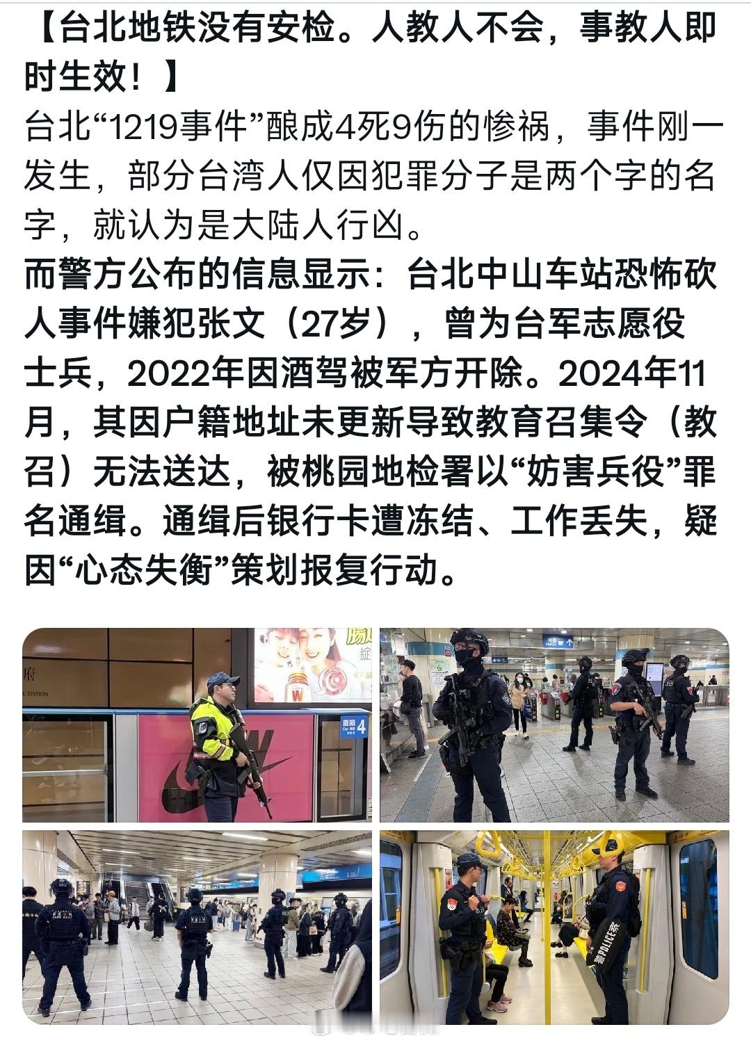 台北地铁怎么拿着武器安检,有点极端了台湾宁愿赔钱提前退伍人数暴增