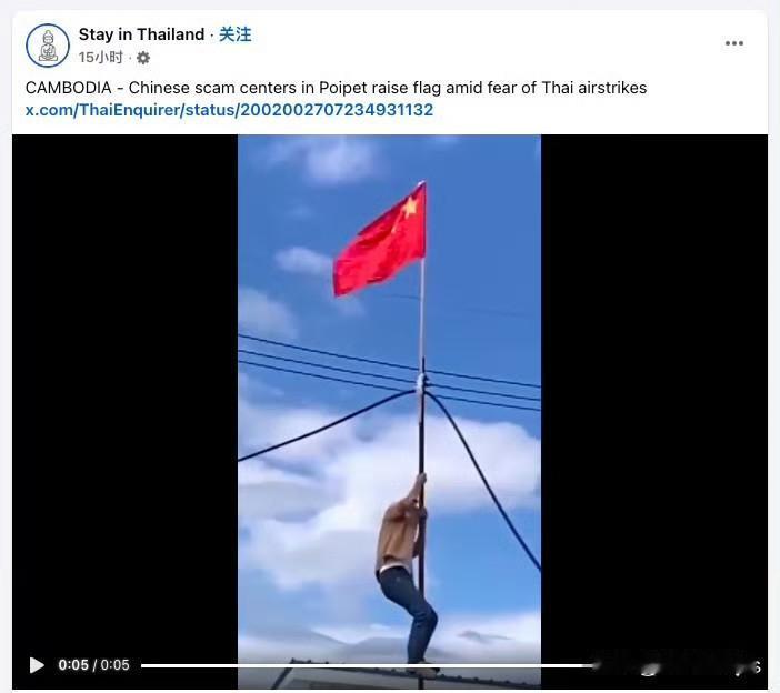 这个内容还真不好评价,波贝(Poipet),泰柬边境线上靠柬埔寨一侧的一个地方,泰国轰炸的过程中,一个在那里由同胞们运营的电诈中心升起了旗帜,警告泰国军队不要轰炸那里。