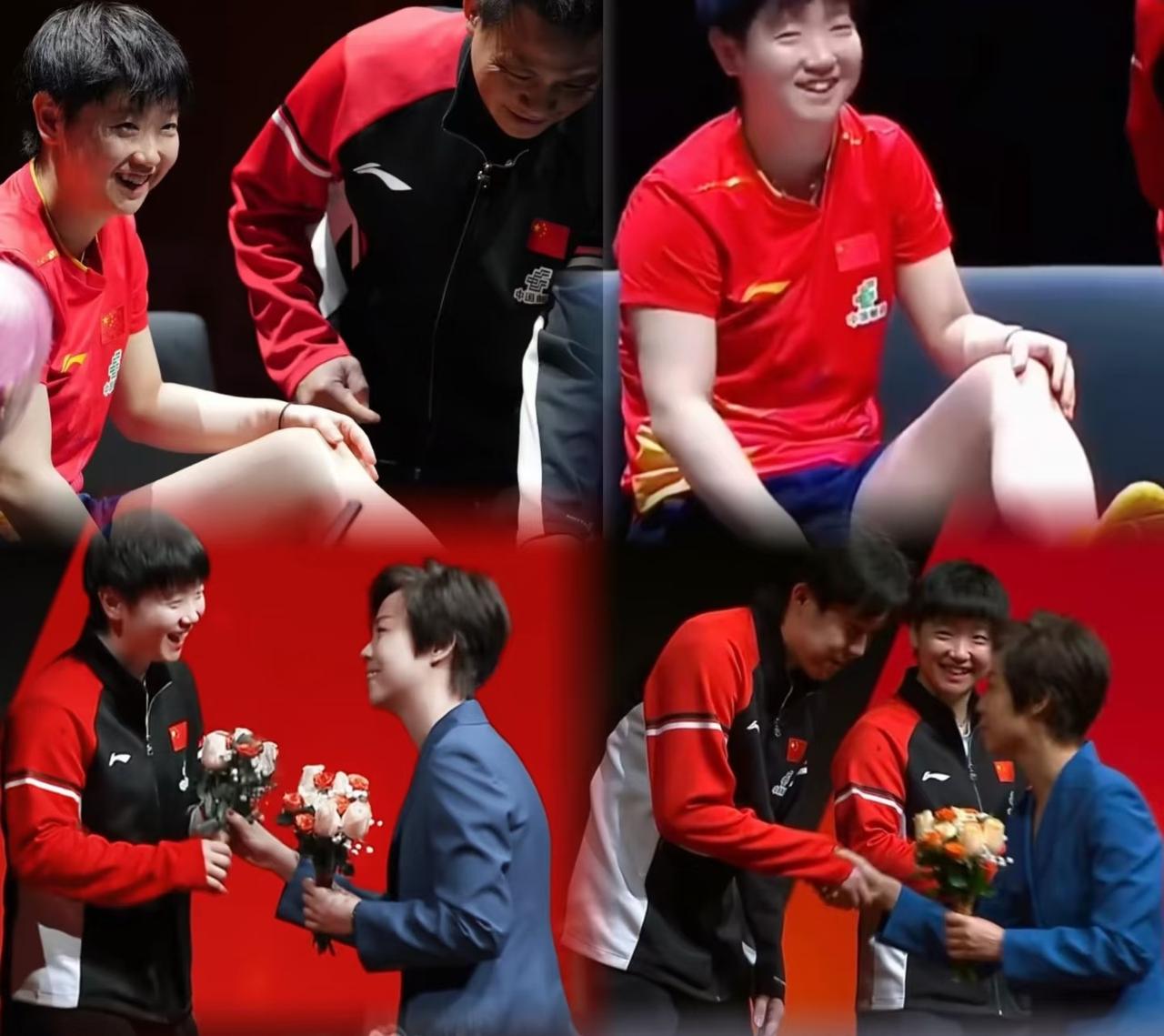发现了一个有意思的事! 只要是有孙颖莎在 不管是对方是多大的领导,去多大的场合,那个氛围都是开心和温馨的。 别人扭到脚,脸上都是痛苦,她还在那里笑,其实是不想让球迷担心。 就算是比赛到了很关键的分数,对方擦边得分手,她也不上脸,跟她打球,只有技术上的对决,孙颖莎不会在场上跟别人理论,除非是真的对方错了。 训练馆里,有她在的时候,总少不了笑声,大家平时看的视频就知道了,总是有不少乐子。 这么有趣的孙颖莎,希望她早日康复!回到赛场,给大家带来更多精彩的比赛。 图片源于网络