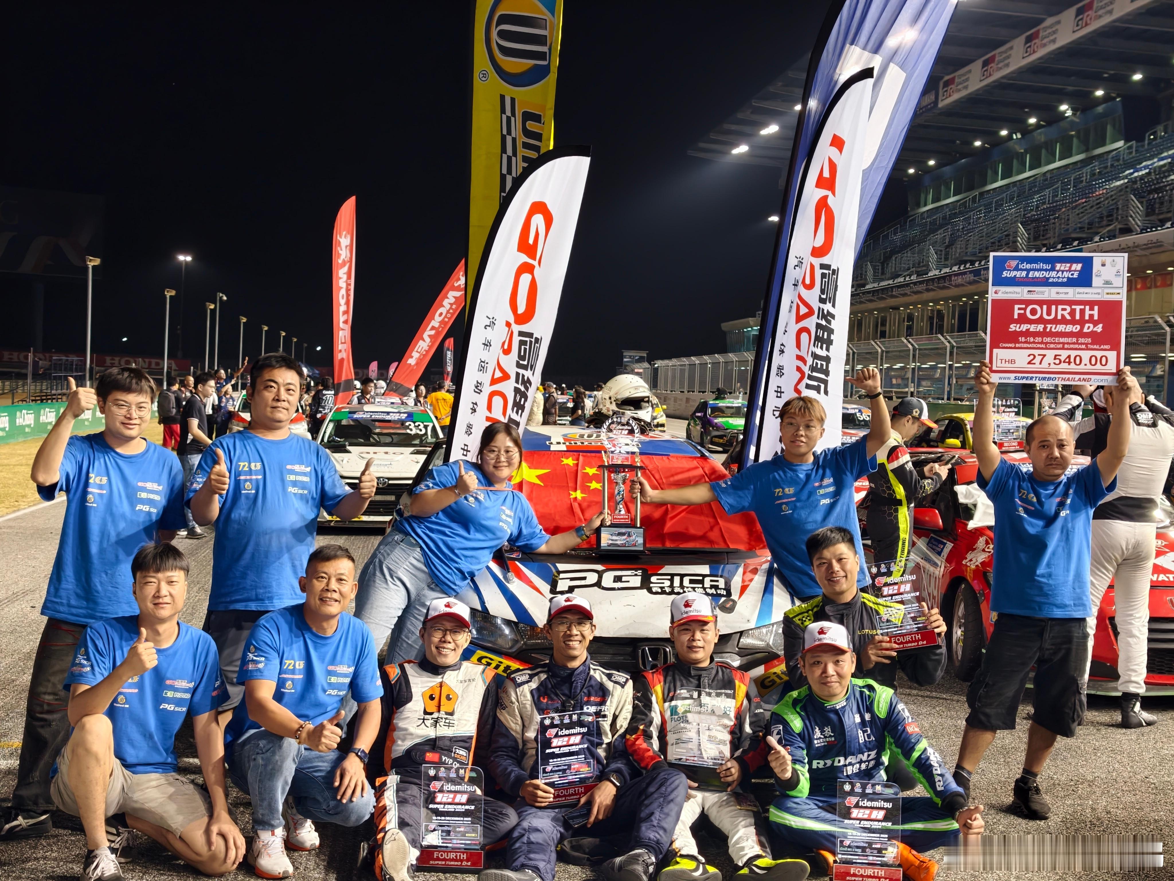 昨天没发微博,因为专注比赛也说明我们比足了全程,从中午12点到晚上12点,Super Endurence 12小时耐力赛,完赛并拿到了全场第9、组别第4的好成绩这几天的比赛妥妥的地狱级开局,周四自由练习第一次出车,就因为油品问题(当地加油站买的普通汽油)导致爆缸,换上备用发动机后,依然因为油品原因引发了连串问题,直到周五排位赛结束,我们5位车手驾驶的总圈数都不到20圈,而我是第一次到这条赛道周六正赛前一晚,车队把两台发动机可用的完好零部件拼成一台,重写电脑降低动力输出以适应这里的油品,直到起步前,车队经理都不确定这车能不能正常跑完第一节…所以大家决定让我跑第一棒表面原因是我驾驶风格比较惜车,后来才说出真相——不知道车能跑多远,让没来过的我多体验几圈结果一开赛,我的第一棒1小时不但顺利跑下来,车的状况还相当好,很快就进入了组别前10。然后各棒车手贯彻稳扎稳打,半程入夜时我们已经进入全场20,组别前5。我的第二棒正是入黑时分,一个半小时的夜间驾驶,我完全找到了跑这条赛道感觉,刷出了这个周末我们车队的最快圈速,并且借助对手的失误等等,总成绩一度上升到组别前3,全场第7后面的队友们总体也表现出色,还幸运地避开了几个事故,但对手实在强大,东南亚当地的专业车队在车的性能、进站效率上都明显优于我们,所以最后一小时我们的组别第3还是被翻掉了,最后组别第4、全场第12名带回。这场比赛共有近80辆车参赛,按性能分了七八个组别,我们所在的D4组(1.6升自吸无限改装)是全场参赛车最多、竞争最理解的组别,最后我复盘了一下,第4名已经是我们能取得的最好成绩,无悔啦。泰国武里南的这个赛事一年一度,由于赛道的规格非常高(FIA一级赛道,可以举办Moto GP和F1),是东南亚非常重头的民间赛事,据说也是亚洲范围内比赛氛围、体验最好的民间耐力大赛。这回我对自己的表现也很满意,回头会有一条流水账随手拍视频和大家分享。最后必须感谢合作多年的高维斯车队,遇困难专业冷静,拼尽全力,虽说是民间赛车服务机构,但专业水准和竞技态度真的没得说,以前他们就几乎逢赛必出成绩,这回身在其中,明白了成功是有必然性的 泰国·Chang International Circuit
