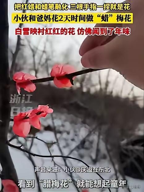 冬日里的一场浪漫惊喜:当"蜡梅"遇见爱情 吉林通化的一个农家小院前,一对年轻情侣的脚步声惊醒了沉睡的雪地。 南方姑娘第一次见到北国的银装素裹,睫毛上沾着雪花,却突然被院角几树"红梅"夺走了目光——那些在白雪中烈烈燃烧的花朵,竟是老两口用烛泪一点点捏成的温暖谎言。 这个充满巧思的见面礼,不仅揭开了东北人骨子里的浪漫,更让我们看见传统习俗在当代情感表达中的新生命。 东北的冬天向来擅长制造反差萌。零下三十度的严寒里藏着最滚烫的人情味,光秃的树枝上能"开"出最鲜艳的花朵。 小伙父母连续三夜熬熔红烛,手指烫出水泡也不停歇,只为还原记忆里最珍贵的年味。 这种用蜡仿制腊梅的古老手艺,实则是先民应对漫长寒冬的智慧结晶——当真实的植物在酷寒中难以存活,人们便以巧手创造生机。 民俗学者李静远在《冰雪年俗考》中指出,东北地区类似"蜡梅"的工艺多达17种,从冰灯到雪雕,都体现着"向严寒讨要温暖"的生活哲学。 令人玩味的是,这项传统技艺在这个爱情故事里焕发出新意。老两口将原本用于辞旧迎新的"蜡梅",巧妙转化成迎接家庭新成员的仪式。 心理学教授王立明认为,这种文化符号的创造性转化,恰恰说明传统习俗的生命力在于"流动的情感载体"特性。 就像福建土楼的夯土墙会刻下新媳妇的名字,陕北窑洞的窗花总藏着祝福密码,东北的"蜡梅"此刻承载的是对姻缘的美好期许。姑娘指尖触碰花瓣时绽开的笑容证明,真正打动人的从来不是工艺的精美程度,而是藏在一笔一划里的真心。 在这个扫码支付就能买鲜花的时代,慢工出细活的"蜡梅"反而成了稀有的情感奢侈品。 社交平台上寻找失传的温暖手艺话题下,网友们晒出祖辈传下的煤油灯罩剪纸、用高粱秆编的蛐蛐笼,这些费时费力的老物件突然被年轻人重新珍视。 正如文化评论人张喻所言:"当工业流水线切断我们与万物的情感联结,手作的温度就成了对抗时代浮躁的良药。 "那几树看似笨拙的蜡梅花,比任何名牌包更能击中现代人对真挚情感的渴望,因为它们见证过围炉夜话的温情,储存着一家人把手教做手工的笑语。 皑皑积雪最终会消融,但有些温暖却能穿越时光。当这对年轻人将来也教自己的孩子捏蜡梅时,传承的不仅是手艺,更是那种"在极寒中也要开出花来"的生活态度。 民俗保护工作者正在提议将此类冬令手工艺列入非遗名录,但或许比官方认证更重要的是,我们是否还愿意像故事里的老人那样,为生命中重要的人保留一点"不便捷的浪漫"。 毕竟,所有急促时代里令人心动的美好,都需要慢下来才能看见——就像南方姑娘俯身时发现,没有香气的蜡梅花里,藏着整个北中国最浓郁的人情味。