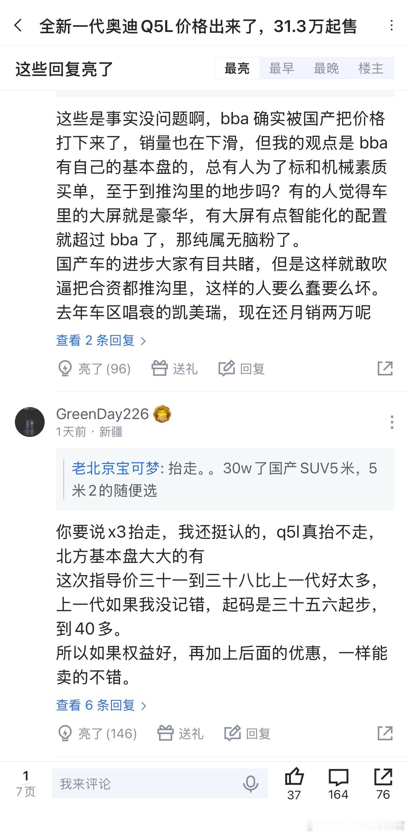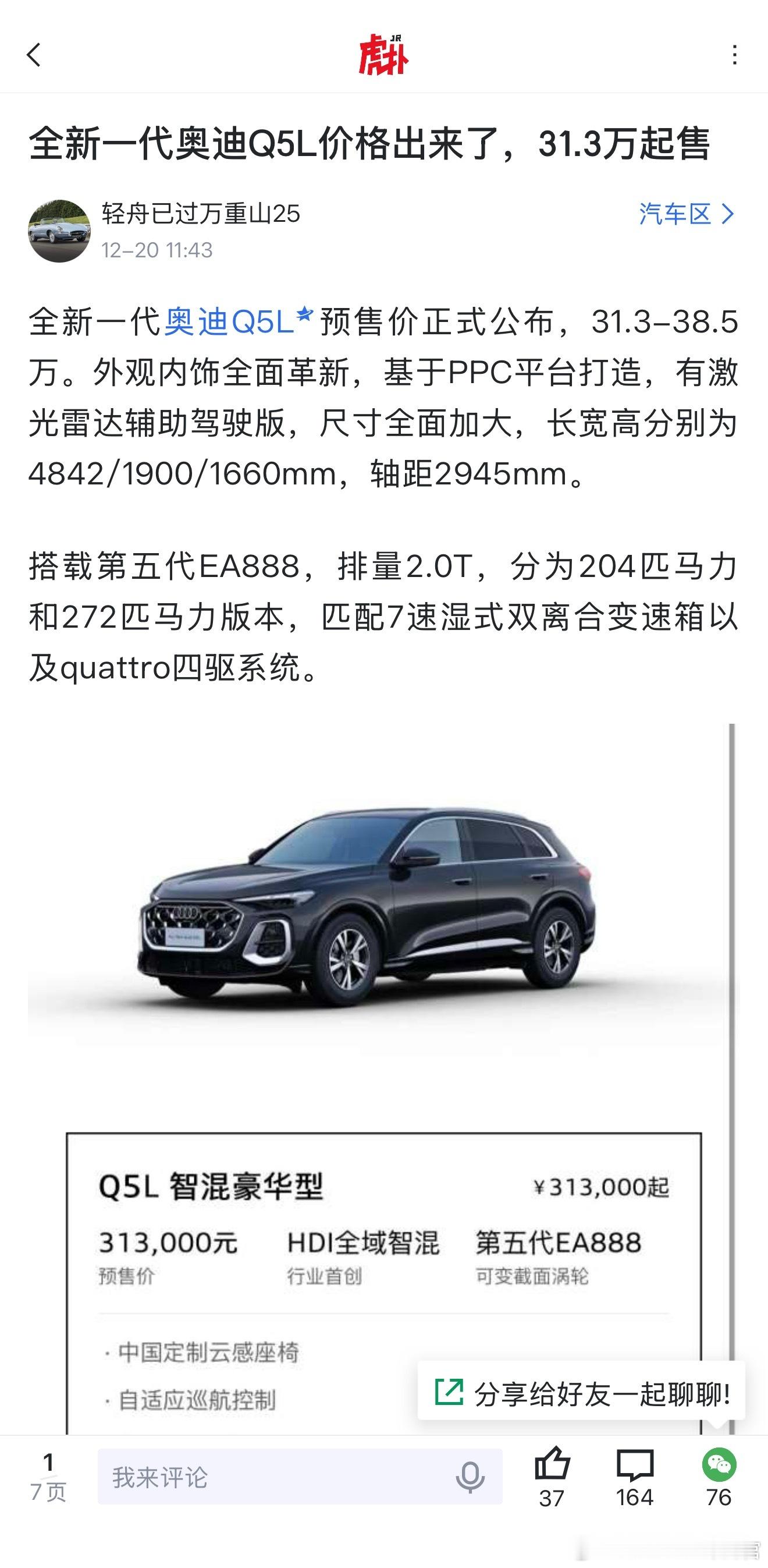 全新一代奥迪Q5L预售价出来了,现在这个尺寸是不是最合适的AutoLab大v聊车