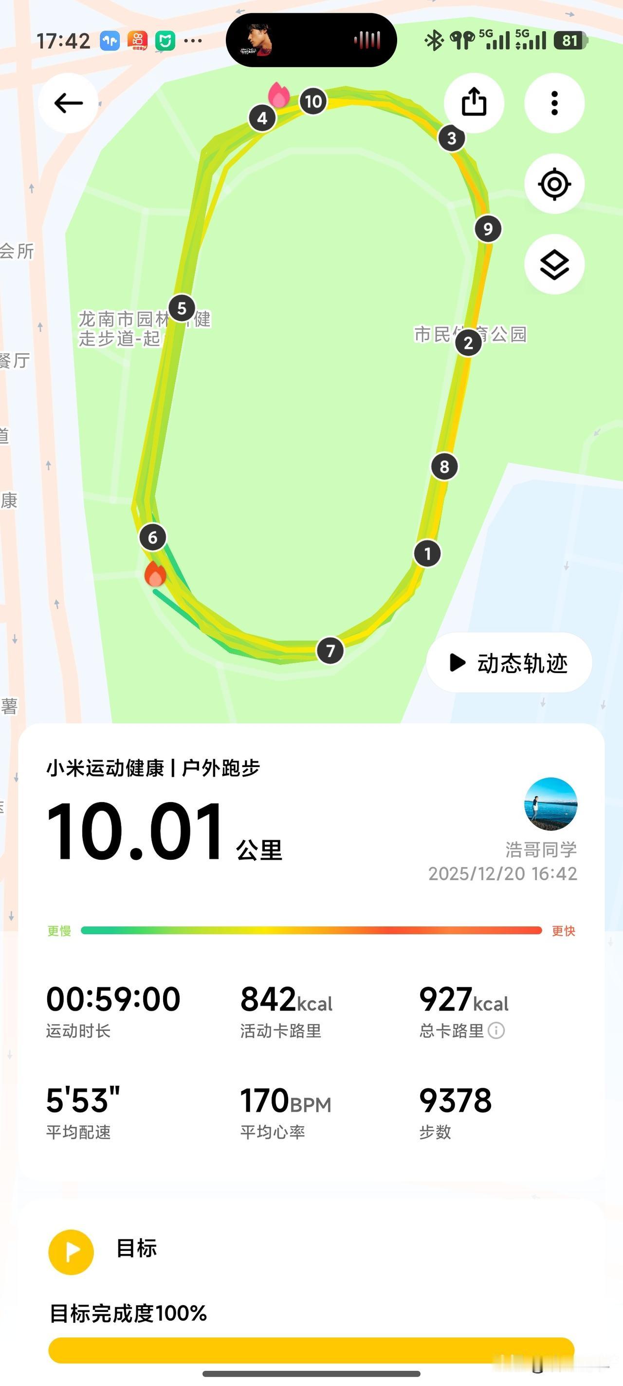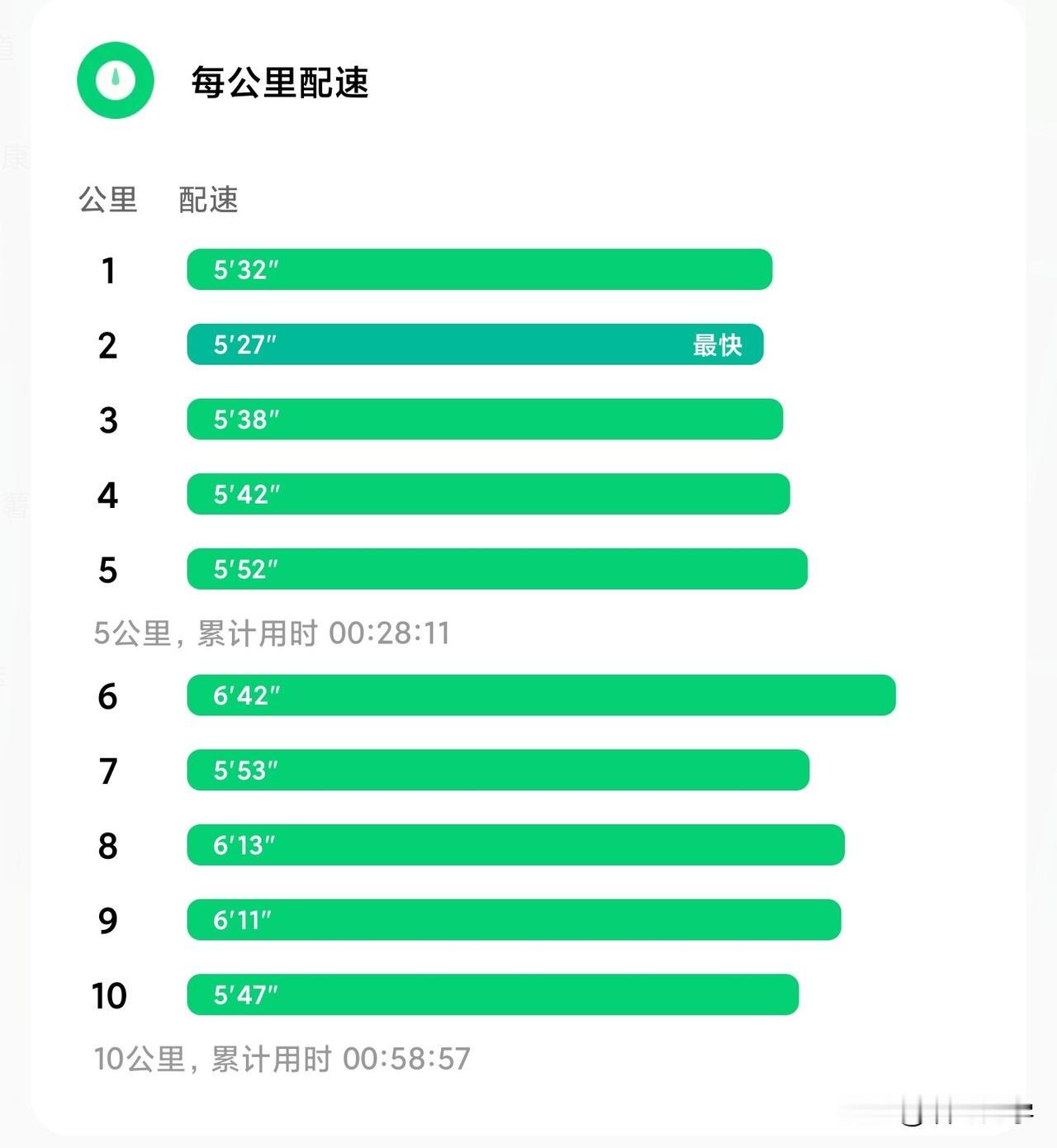 昨天完成12月第二次慢跑10公里,现在我一般都是周六下午跑步,因为工作日接送孩子上下学没有太多的时间,周六才有充足的时间去跑个步,10公里一般要1个小时左右,昨天是突破跑,跑进了一个小时,具体用时59分钟。不过平均心率还是蛮高的,达到了170,果然是速度越快心率越高啊。前5公里的用时为28′11″,基本上能够保持每公里5分多配速,但是到了5公里就能明显感觉体力有点不足,配速退步到了6分配,说明10公里跑量还是非常考验体力的,需要长期坚持训练才可以一口气跑完,继续加油吧!晨跑公里数 有氧五公里晨跑 晨跑公里数 有氧五公里晨跑 清晨五公里慢跑 有氧节奏慢跑 十公里跑者 十一月晨跑 五公里慢跑攻略