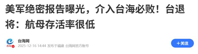 现实果然残酷!2025年12月16日,美军绝密报告曝光,中美军事差距已显露!但戴旭大校曾抛出以观点,直接戳破了一个残酷的现实! 中美两个国家作为世界强国,在很长一段时间里,都成为国际拿来对比的国家。而关于两个国家之间的一举一动,国际更是高度关注。 自建国之后,我国就一直在努力的研发新型的军事装备。同我国不同,美国近年来的军事研发明显呈现了落后的趋势。 所以在这个前提下,国际更热衷于将两个国家的军事实力作比较。就在2025年12月16日的时候,美军的一份绝密报告被曝光。在这份报告中,五角大楼就罕见的承认了中国的军事实力。 在报告中直接写明,中国有能力在台海冲突中击退美国,美国已经失去了对中国“压倒性军事优势”。 美国能够承认这一点,在人预料之中,又在人预料之外。因为在去年的时候,美国就已经意识到了,中国的高超音速导弹能够在短短的“几分钟”时间里,摧毁美国的航母。 这份绝密的军事报告再一次证明了,中美军事已经出现了明显的差距。而除了这份报告之外,美国在最新的《国家安全战略》报告中,正是提到要退守西半球,不再追求全球主导。 这一度令人为之兴奋,但是在兴奋的同时不能过度的骄傲。因为中美有一个非常明显的差距,且难以突破的。这一差距就是国土安全距离,戴旭大校就曾指出美国的国土安全距离超8000公里,但中国却近乎0公里。 因为我国没有缓冲的距离,所以一旦战争爆发,我国的周边环境将会带来致命的影响。对此,您怎么看? (信息来源:美国“退守”西半球,意欲何为?-中国青年报) (信息来源:美军绝密报告曝光,介入台海必败!台退将:航母存活率很低-台海网) 【免责声明】:文中部分观点仅为个人看法,请理性阅读。