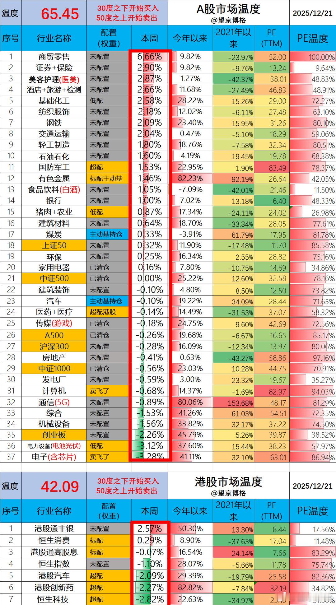 主要指数估值,2025年12月21日统计数据不易,大家点赞支持基金a股港股
