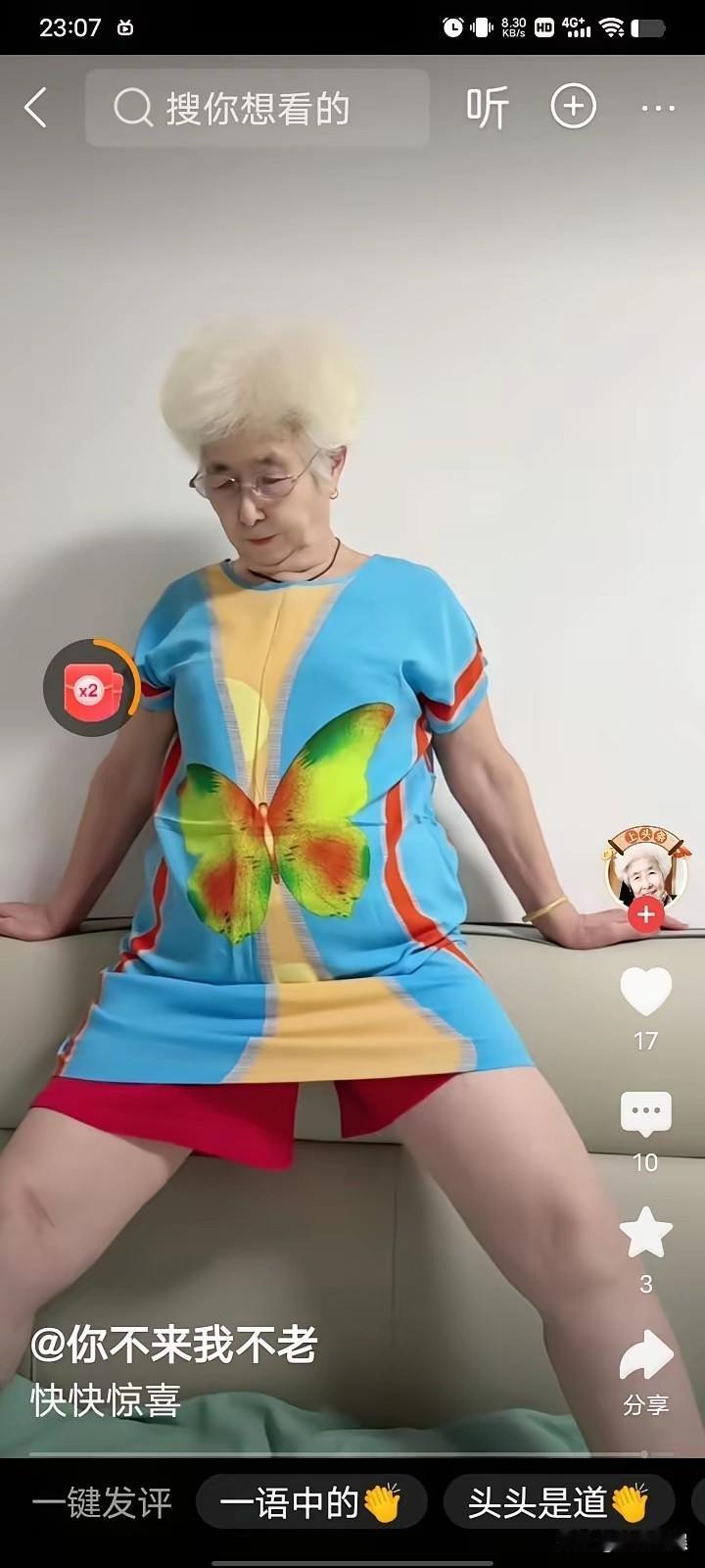 这么大岁数了, 做出这样的不雅动作, 难道不怕被后辈看到吗? 这样的人都是当年没赶上好时候啊, 但凡现在再年轻点还不定啥样呢! 为了流量为了钱, 啥叫脸皮都不知道了, 底线都没了, 现在有的人为了流量赚钱, 真的无底线啊!