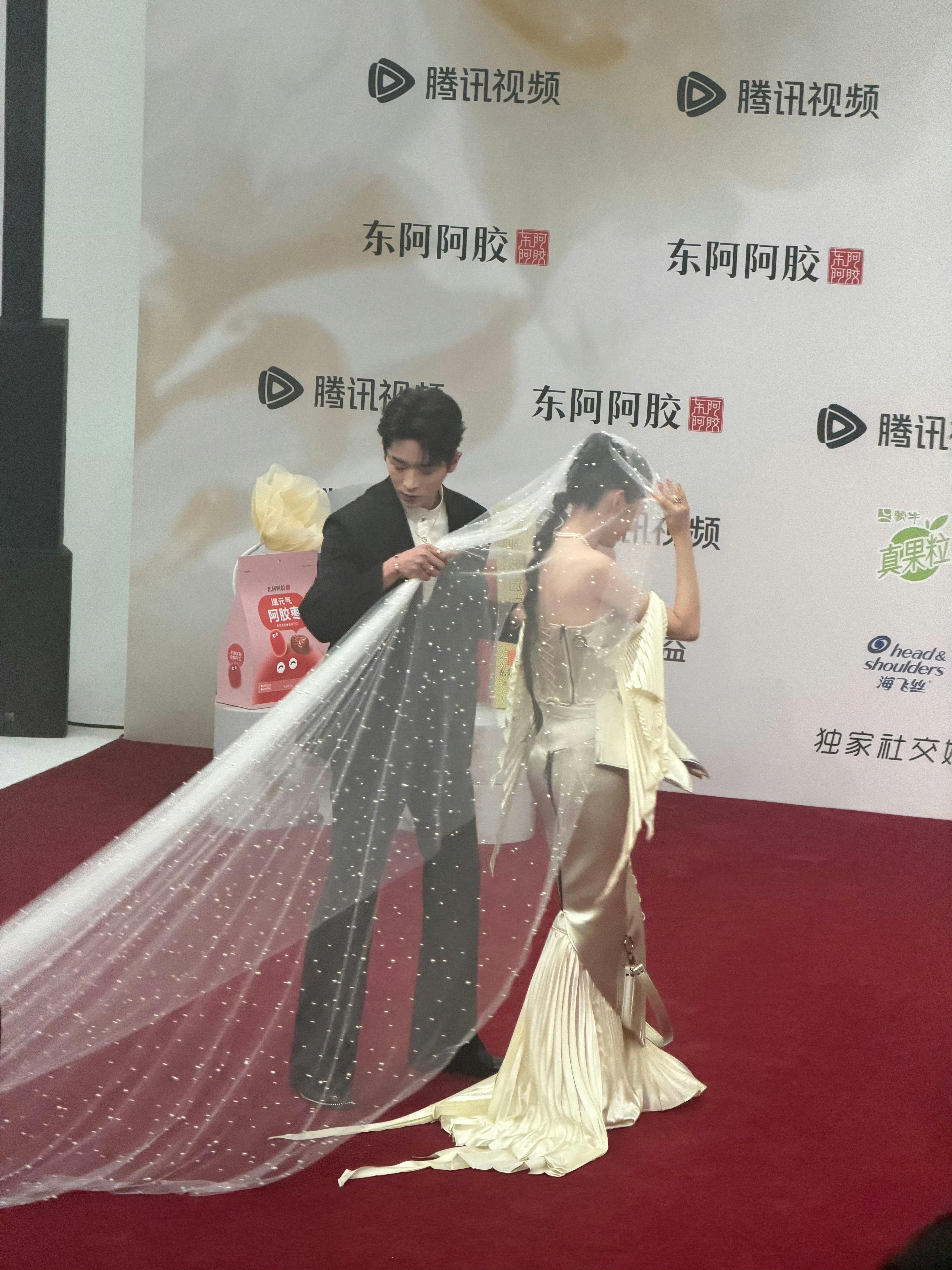 天呐,还是要注意安全呀,踩到头纱好危险看上去
