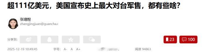 建议以彼之道还施彼身!2025年12月18日,特朗普政府重磅宣布,对台地区出售价值超111亿美元的武器装备!网友:可以学习美国,在台海设立武器禁运检查机制!   针对台湾问题,我国立场非常明确。台湾是中国的领土,是中国的内政问题。应该交由中国人自己内部解决,绝对不允许任何外部势力干涉。在我国三令五申这一原则的背景下,仍旧有一部分国家言行不一,其中就包括了美国。   美国一方面重申一个中国的原则,但另一方面却对台进行军售。就在2025年12月17日的时候,特朗普政府更是重磅宣布,将对中国台湾地区出售价值超111亿美元的武器装备。   这是美国对台军售史上之最,也是特朗普任内第二次抛出对台军售的计划。此事成为国际讨论焦点,美国政府的这一举动,我国自然是绝对无法接受。   所以在美国政府宣布这个计划后,国人就在网络上大力的讨论。在高度的讨论下,有一个方案获得了很大的认可。那就是效仿美国的举动,在台海设立武器禁运检查机制,一旦发现军事装备就进行摧毁。   所以会提出这一方案,是因为据美国官员透露。在上个月的时候,美国军队特种作战部队在印度洋登上一艘我国的货船。在进行检查之后,对该货船展开了摧毁行动。因为据美国表示,该货船是运往伊朗的军事相关物资。   特朗普政府完全就是有错在先,所以我国完全可以以彼之道还施彼身。学习美国,让美国吃哑巴亏。   对此,您怎么看? (信息来源:超111亿美元,美国宣布史上最大对台军售,都有些啥?-观察者网) (信息来源:美军被曝突袭从中国驶往伊朗货轮-观察者网)