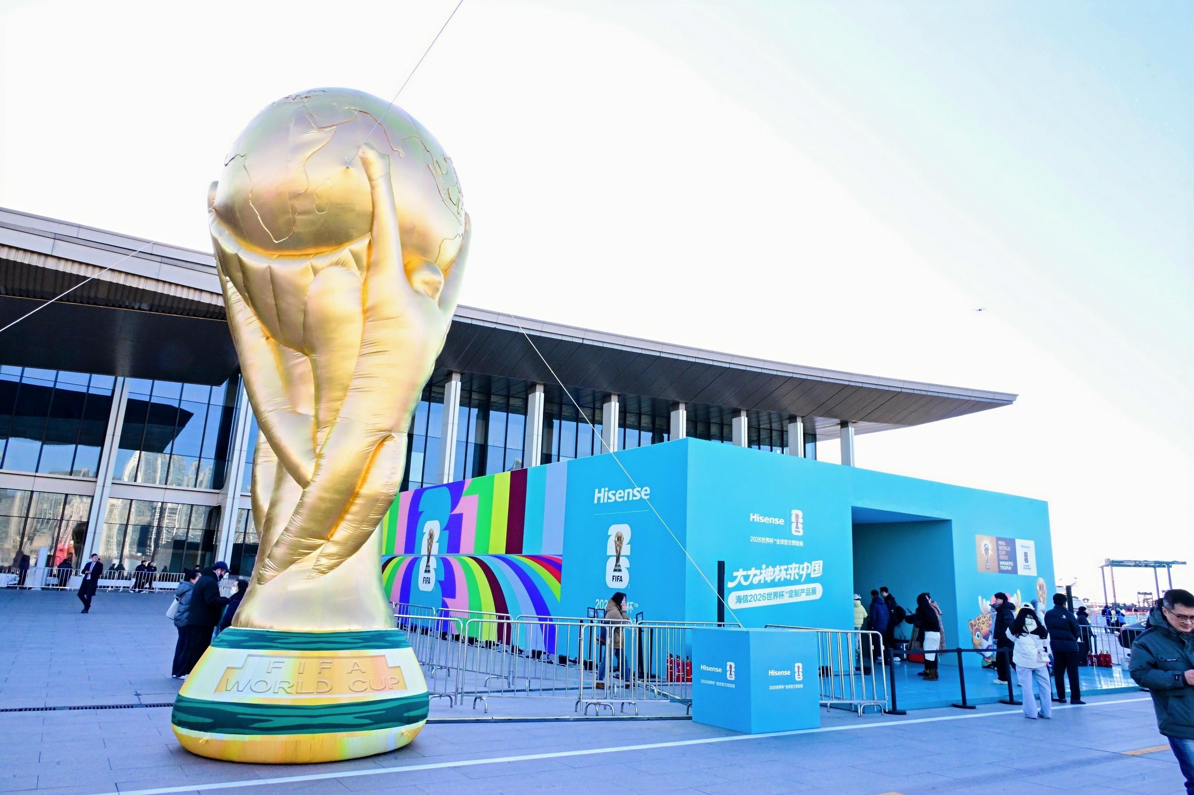 海信世界杯定制产品亮相作为2026世界杯全球官方赞助商,海信进一步深化产品布局,为2026世界杯定制顶级产品阵容,为球迷打造顶级硬件配置,提供沉浸式看球体验。海信世界杯定制全阵容,两款重量级电视格外引人注目,包括世界杯官方指定电视,海信116吋RGB-Mini LED电视,以及100吋E8S Pro电视,开启世界杯看球新模式,最佳看球搭子。海信激光电视,堪称艺术品级别的产品,可卷曲激光影院江山画卷R1,激光电视星光S1纯享版,打造崭新激光影院,为球迷带来前所未有的视角体检。12月21日,助力世界杯定制产品亮相,海信挑战“吉尼斯世界纪录”称号,打造最多人组成的大力神杯图形,一起为世界杯加油助威!