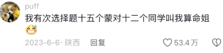 我有次选择题,十五个蒙对十二个,同学叫我算命姐