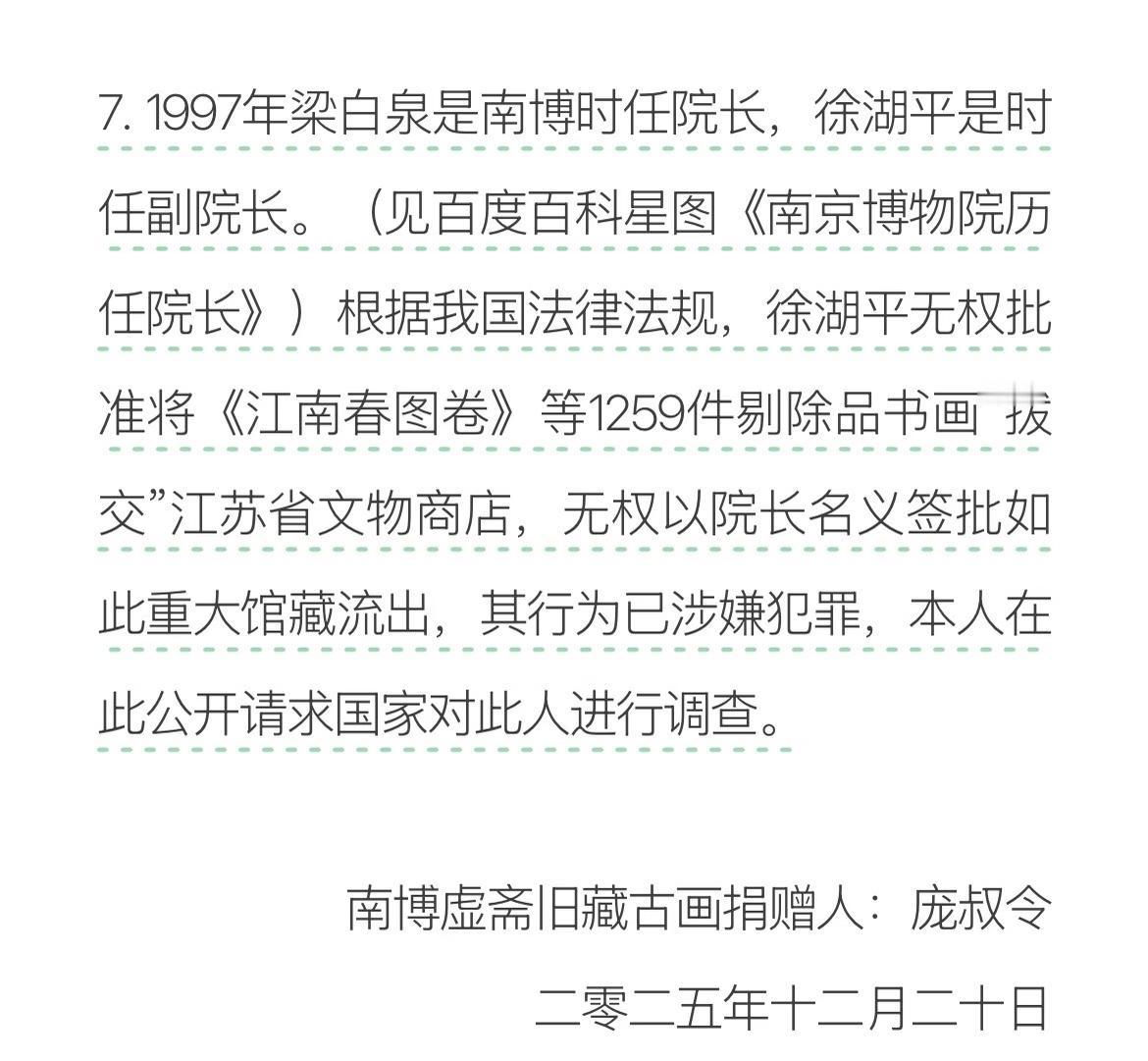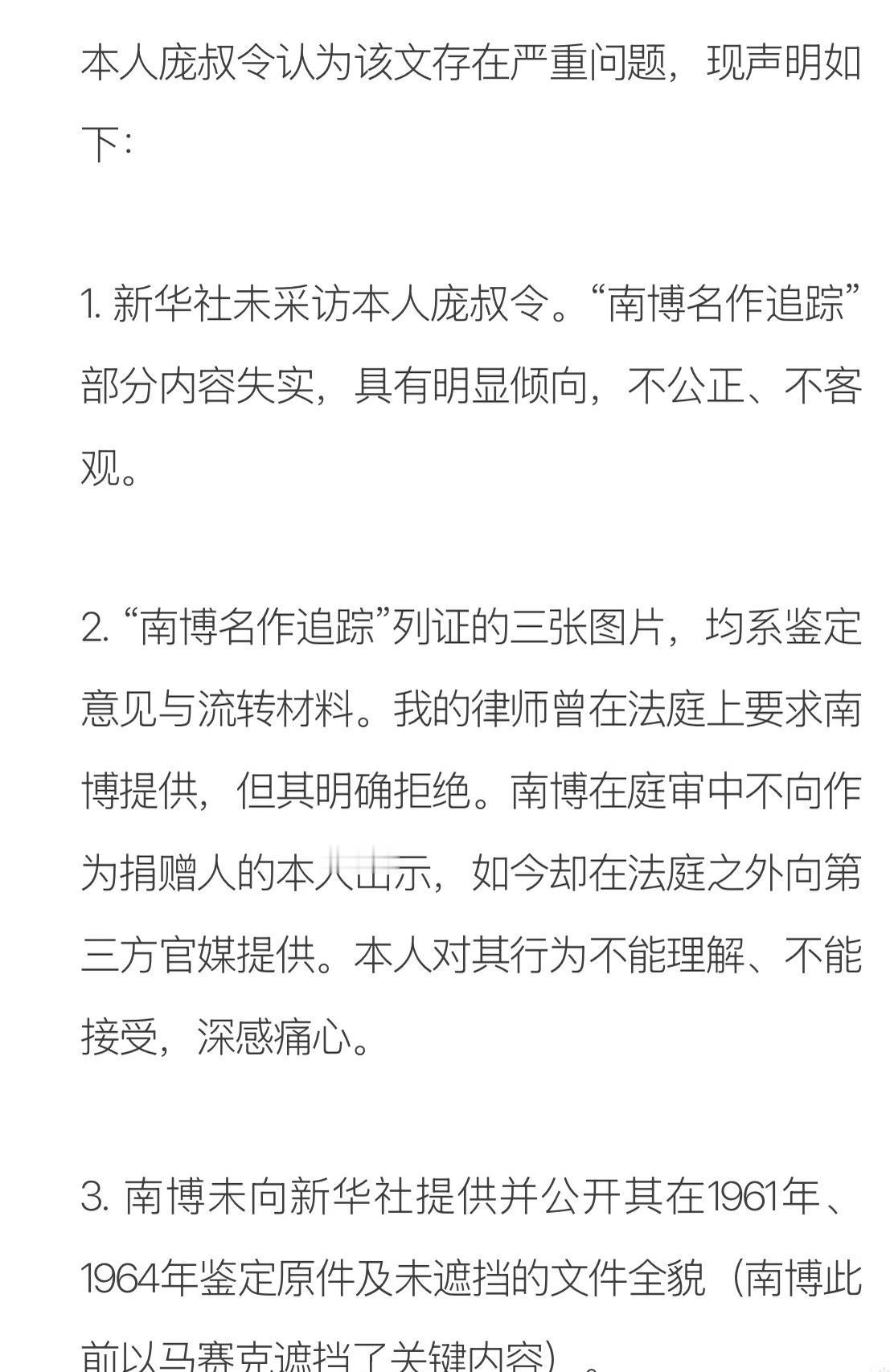 看了庞叔令的最新发文,深有感触的就是庞家幸亏有后人在不屈不挠地追查真相,讨一个说法,要不然庞老爷子在下面都待不安稳。 庞叔令质疑得有理有据,条理清晰。 专家组的鉴定如果没有庞家后人质疑,就成了板上钉钉的事儿了! 被人冒充亲属,捐赠行为被说成落败卖画,传家宝贝又被鉴为赝品,继而流出变现,换谁谁能不生气啊! 尤其是第七条,徐湖平现在发声把自己摘得清楚,可票据上明明白白写着他的名字。这难道也要请人鉴别一下真伪不成?!