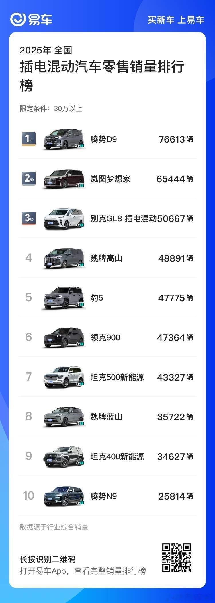 今年,增程和插混前十销量之和都是50万台左右,差距很小了~有意思的是,高端插混头部车型都是 MPV大v聊车新能源汽车