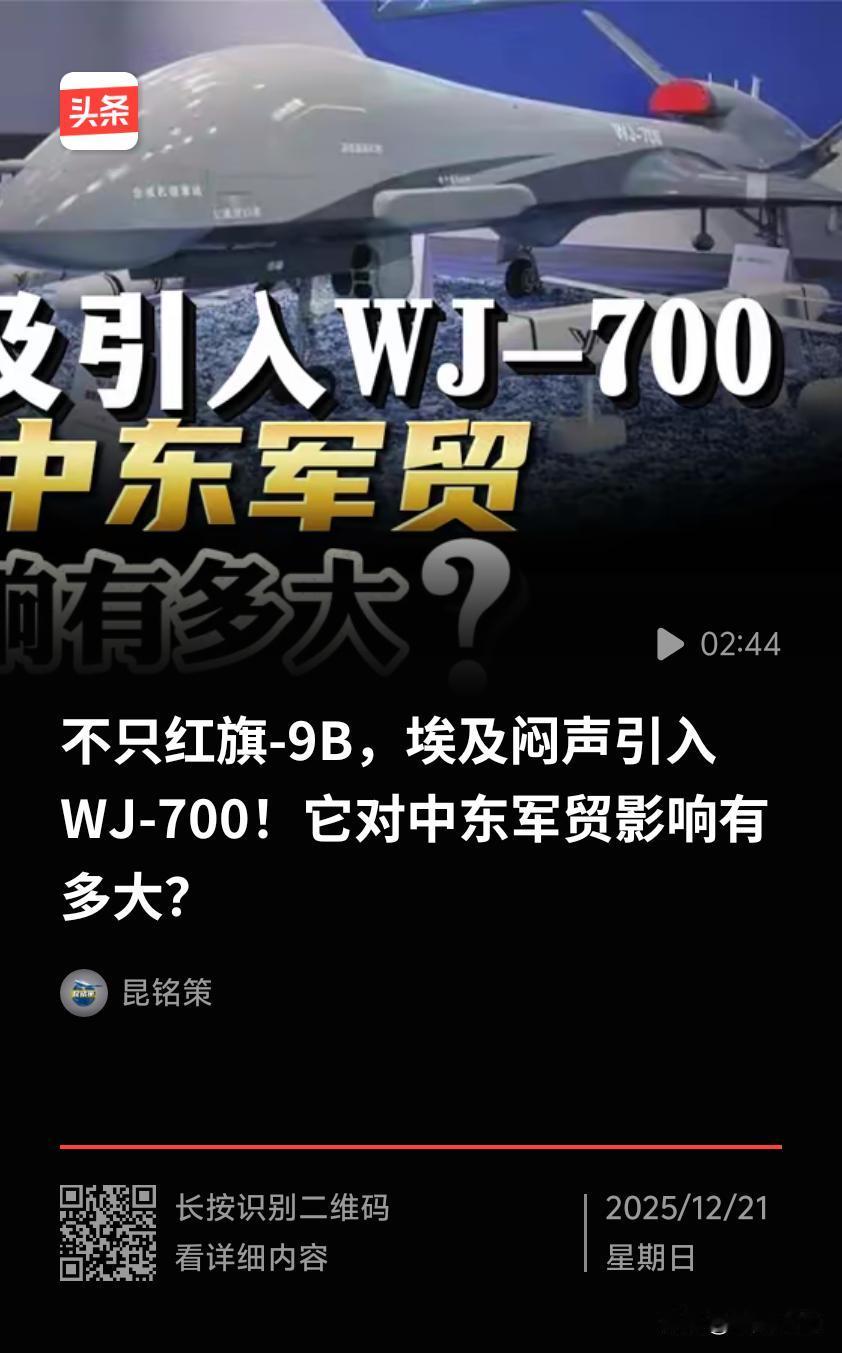 近期有消息传出,埃及在今年6月敲定一笔价值4亿美元大单,购入10架中国WJ - 700无人机,平均每架4000万美元。以下为你介绍相关信息: WJ - 700无人机性能 它是中国航天科工2012年开始研制、2021年首飞的喷气式无人机。最大起飞重量3.8吨,载武量840公斤;最快700公里/小时,巡航速度600公里/小时时能飞20小时;飞行高度12000 - 15000米。相比美国MQ - 9螺旋桨无人机,速度优势明显,执行快速反应任务时能早到半小时甚至一小时。 其武器挂载丰富,有反舰、对地、反雷达站等多种导弹。如C - 705反舰导弹射程170公里,靠毫米波雷达制导,可打击1500 - 3000吨船只;CM - 502KG导弹速度1.1马赫,射程25公里,能穿透1米厚装甲,适合打坦克和碉堡,可执行海空多类型任务。 埃及采购原因 ● 实际军事需求:埃及控制苏伊士运河,红、地中海海岸线长,西奈半岛和利比亚边境需反恐。此前的翼龙等螺旋桨无人机巡逻监视行,但速度慢、航程有限,快速支援或应对有防空能力目标时力不从心。WJ - 700速度快、航程远且能挂反舰导弹,可填补空白。 ● 政治因素:购买无人机不如买战斗机敏感,美国反应相对没那么激烈。且中国装备政治包袱少,不会因地缘政治突然断供,此前苏 - 35被卡脖子的教训让埃及更倾向选择中国装备。 ● 性价比考量:4000万美元一架看似不便宜,但WJ - 700是喷气式,技术和制造成本高。4亿美元还包含地面控制站、数据链、武器弹药、备件、培训等一整套,总体算下来价格合理。 交易意义 ● 对埃及而言:不仅获得先进装备提升军事能力,还可借此建立自身生产和维护能力,减少对外依赖,推进国家工业中无人机项目的发展。 ● 对中国军贸来说:反映军贸思路转变,从以前靠低价产品打市场,到如今推广WJ - 700这类高端产品,技术和作战能力可与西方产品竞争。若WJ - 700在埃及表现出色,有望吸引更多中东和非洲国家购买,成为中国无人机出口新王牌。