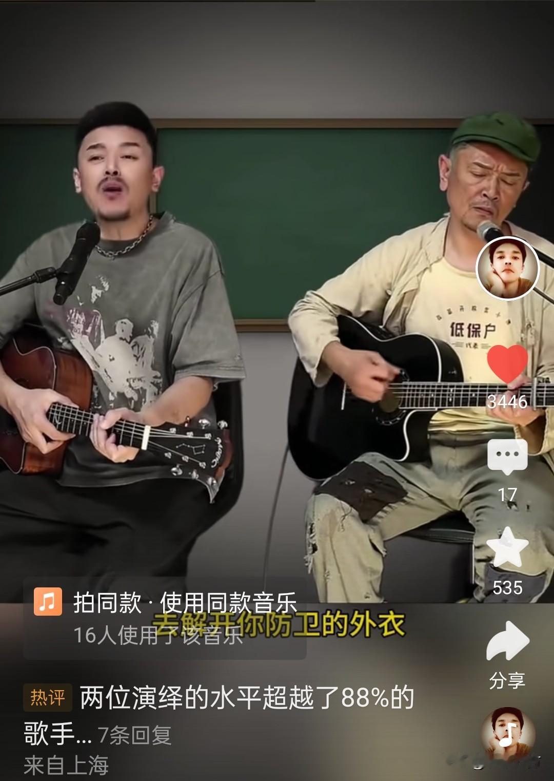 今天关注了一个头条视频号,主要就是两个人自弹自唱的视频,看点在于不同歌曲之间的无缝连接与反转。这种风格以前在相声小品里常见,但他们两个明显技胜一筹,各种歌曲切换自如,感觉与原唱各有千秋,有些甚至要好过原唱了。不过最大的反转来自后面,一个用河南话说:“以后我唱 beyond不准再给我乱串”,让我笑了半天。我是河南人,听着亲切又突兀。[大笑] 有人评论说是一人分饰两角儿,我看不出来,不过两个人确实有点儿像,我以为是爷儿俩。会唱歌真的挺好,尤其是能唱得好听的,让人羡慕。他们的帐号名好象叫“樊了个超”,有兴趣的朋友可以去看下,有趣又好听。[赞]