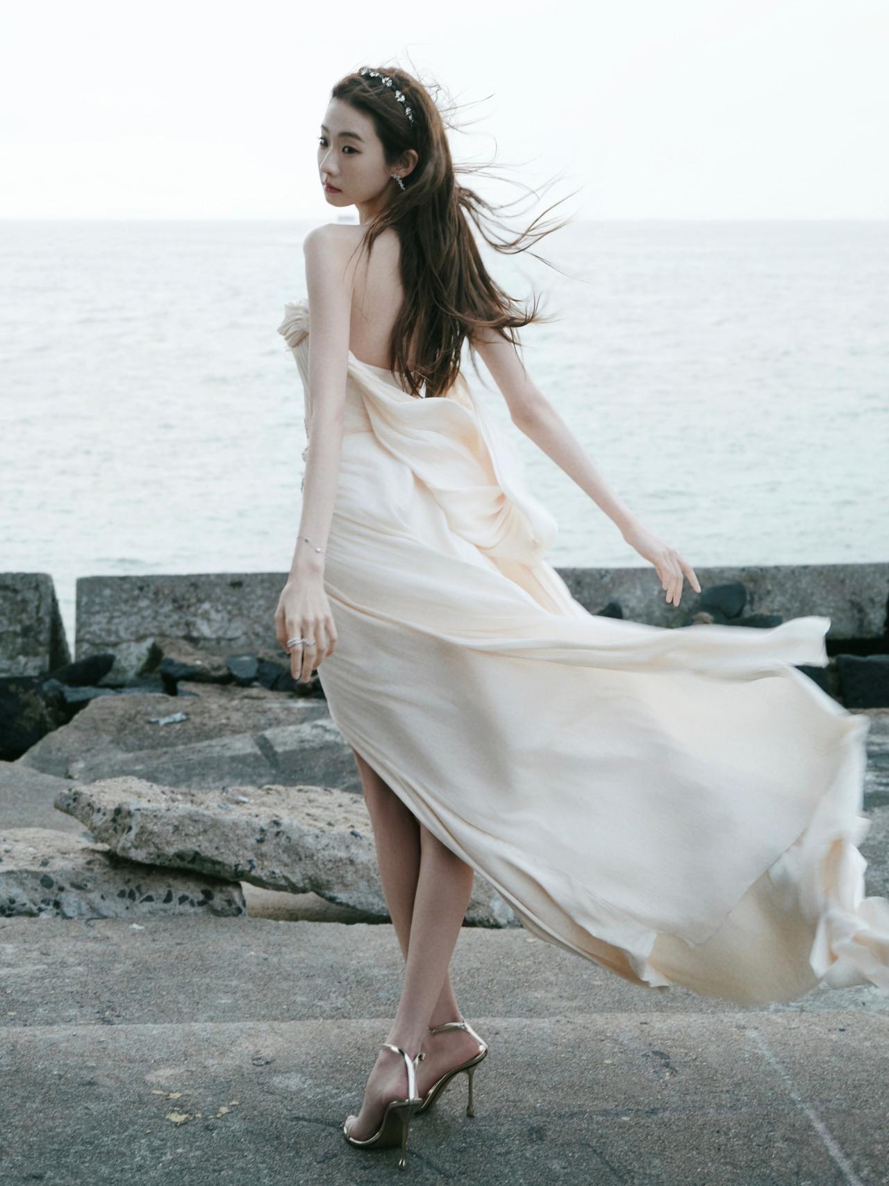 但凡张天爱身上有一点赘肉都穿不了这个衣服