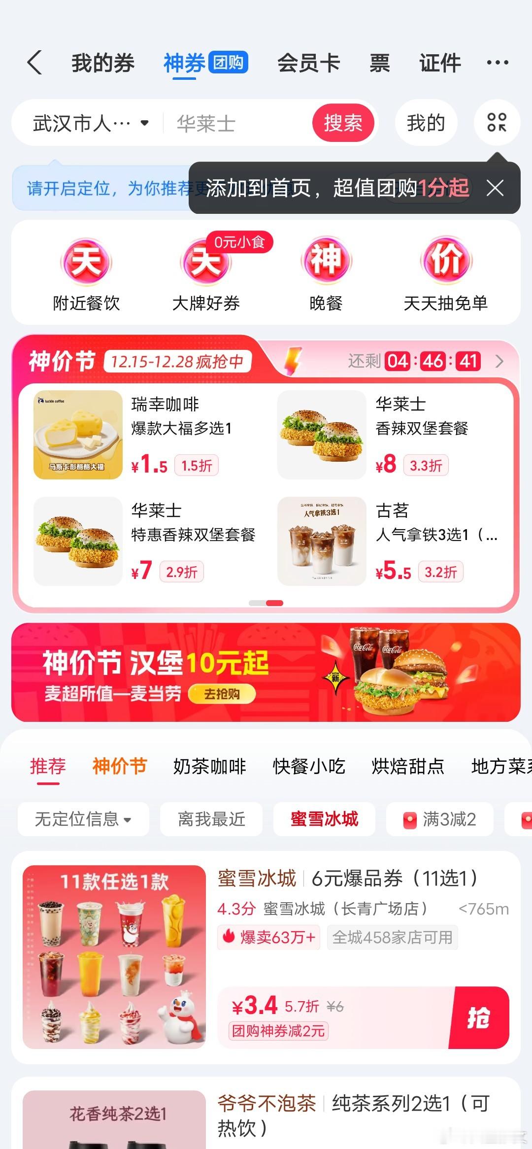 蜜雪冰城的冰箱贴,从支付宝团购神券进去,有新人优惠,买一杯蜜雪冰城饮品,再加购一