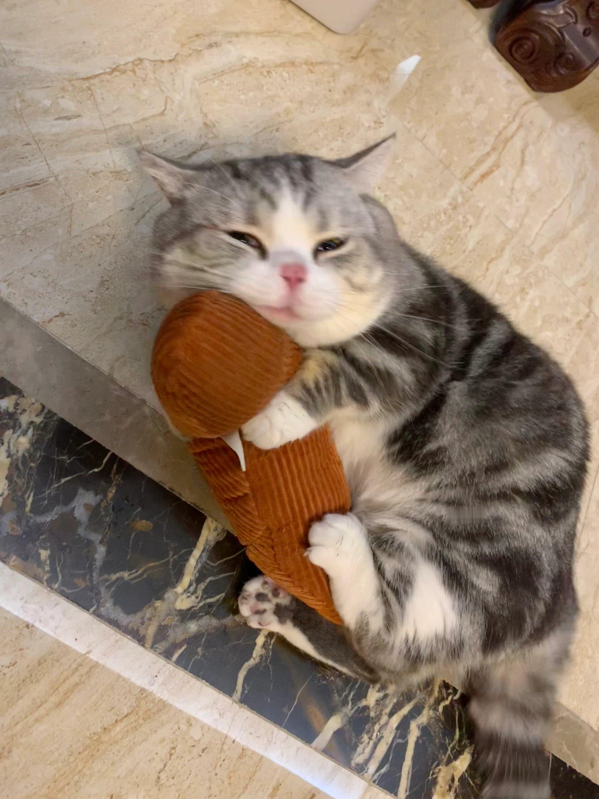 猫猫超爱麻麻新买的抱枕
