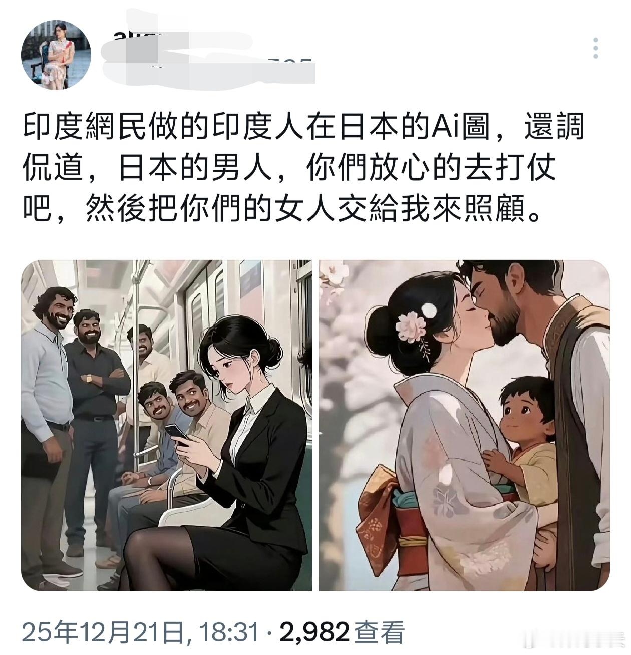 印度网民做的印度人在日本的Ai图,还调侃道,日本的男人,你们放心的去打仗吧,然后把你们的女人交给我来照顾。高市曾说福岛核事故未损害人健康印度大坝未预警突然放水