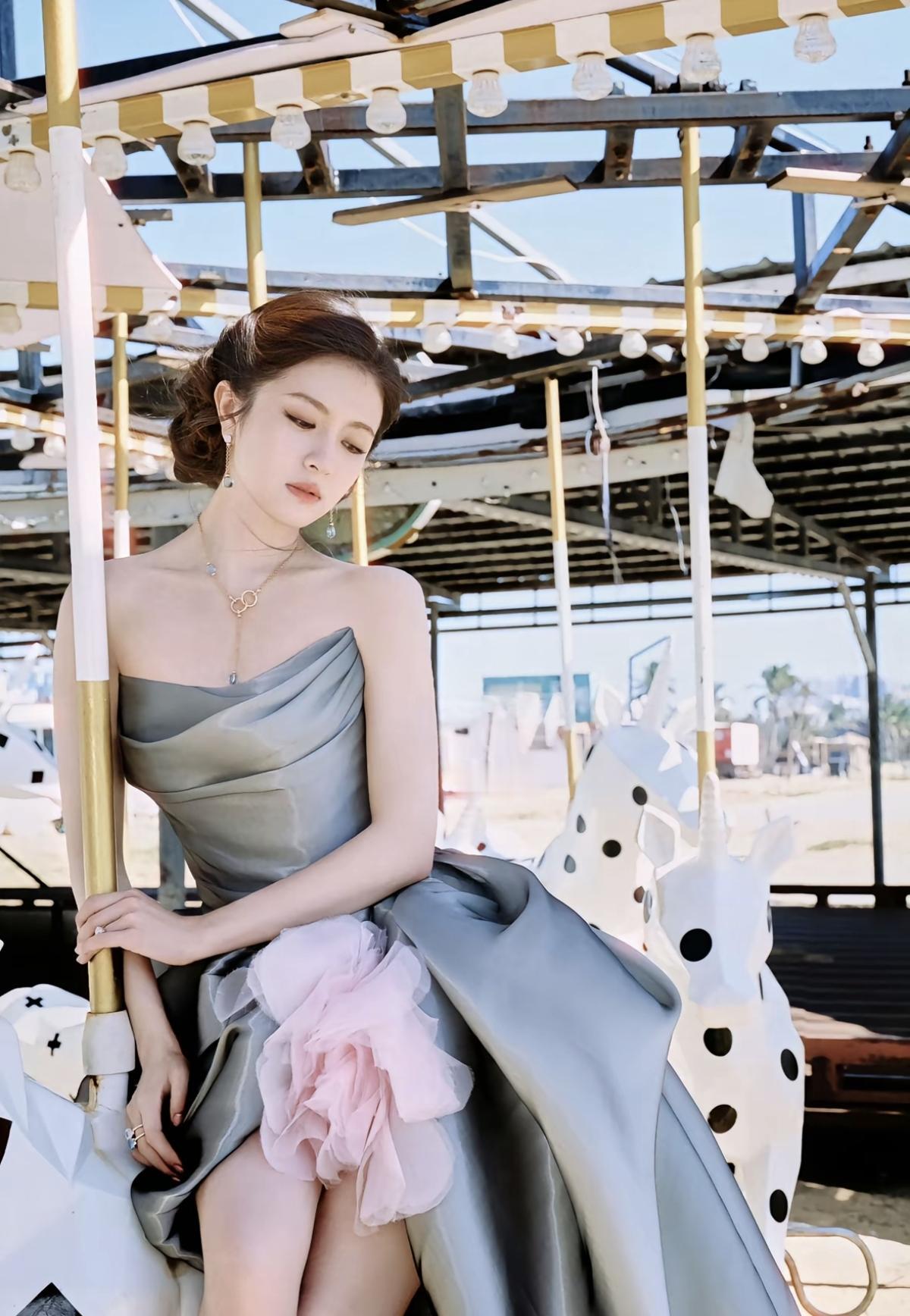 抹胸缀钻,流光映雪,陈都灵自带破碎感的清冷仙颜,美到失语[赞]碎钻缀满裙摆,温柔