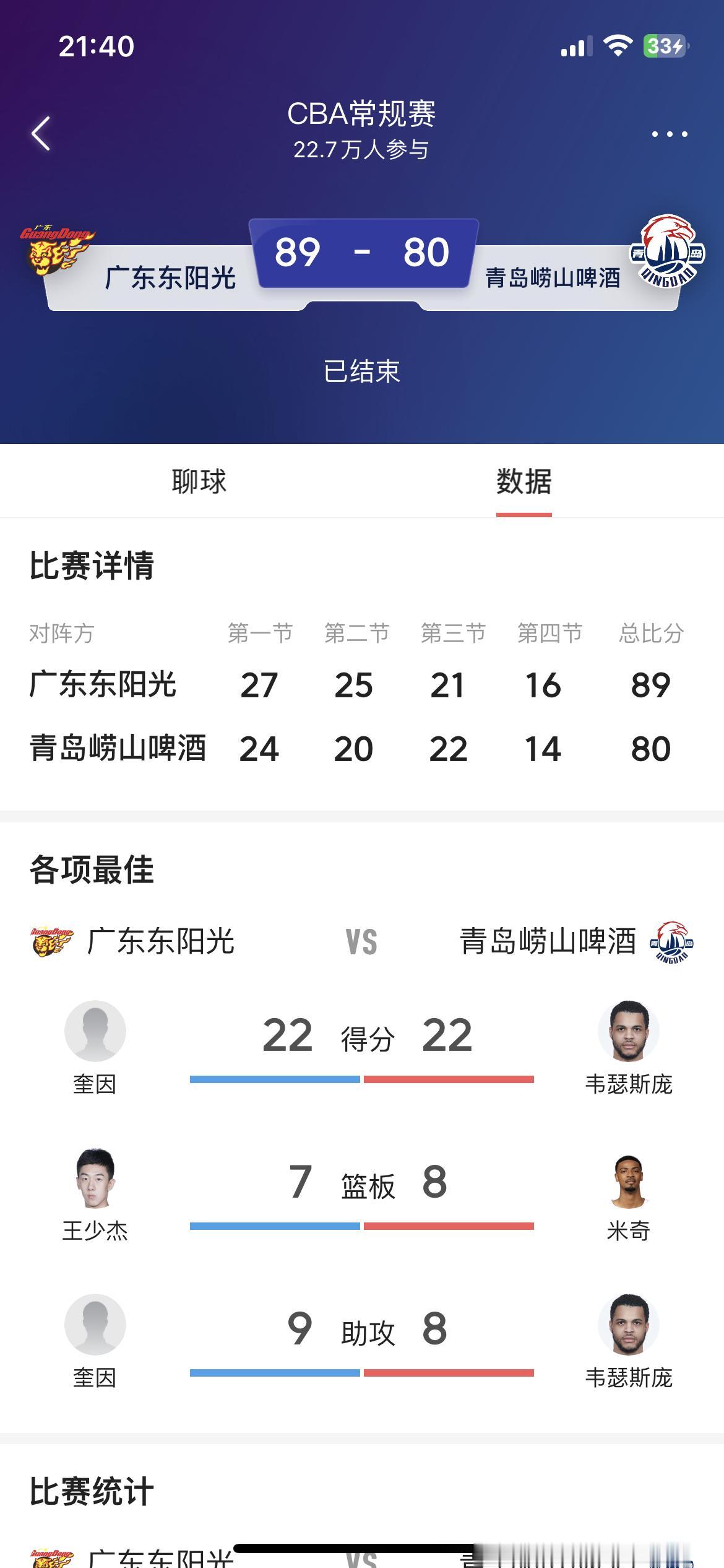 冬至大战,咱广东队也吃顿饺子🥟,恭喜广东队89-80击败青岛取得4连胜,很难得的4连胜,赛前连很多广东球迷都不敢相信能轻松战胜青岛队,因为前三场广东队打得都是55开,何况前三场的对手还不是强队,这要是遇到青岛,有维特斯庞和米奇这样厉害的外援,咱广东能扛得住吗?行不行,打了才知道,可见很多球迷包括很多主播也都是球盲呀,青岛队外援厉害,难道广东队的外援就不厉害了吗? 奎因和萨姆纳,你冲过框,我去冲,广东队有两个冲框高手,一般的队也扛不住呀,何况还有萨林杰这个老油条坐镇,老萨今晚都没出汗,随便打打,划划水广东就赢球了。 还有就是广东队的定海神针,发带战胜徐杰,今晚也没怎么用力打,轻松拿了17分6篮板6助攻,两个外援发挥的好,徐杰就轻松很多。 陈家政防维特斯庞防得真好,有身高有吨位,脚步能跟得上,太好用了。王洪泽还是依然稳如泰山,这两个小孩完全融入广东队了,比之前那些大番薯好了不知道多少倍。 感觉广东队磨合的越来越好了,遇强则强,后面的比赛都要保持健康,现在感觉,常规赛只要能赢就行,不管赢得好不好看吧,关键是球员不要受伤,全员保持健康,磨合好阵容,等到季后赛那才是广东队收获的时候!