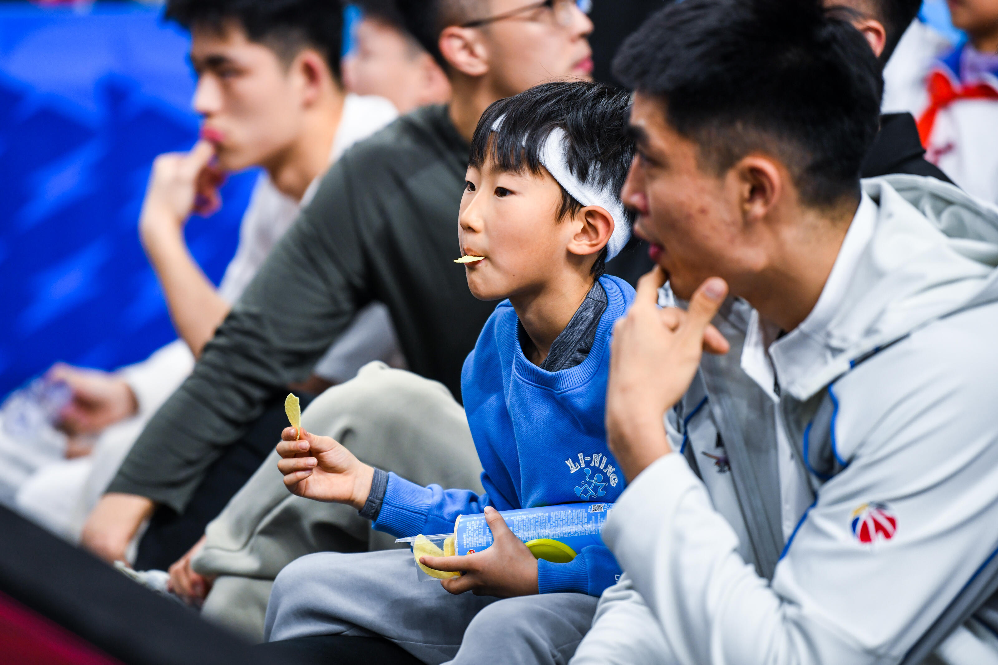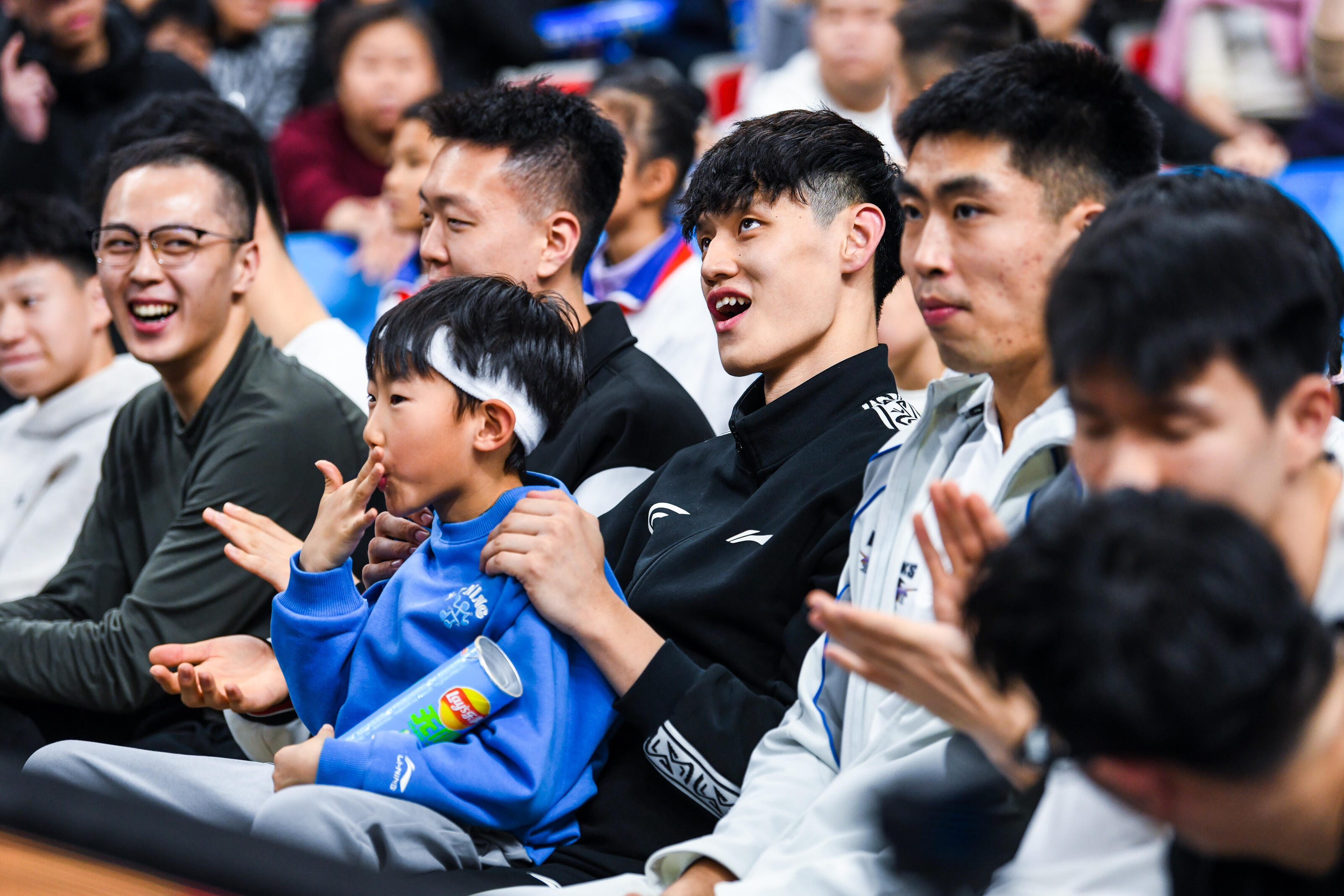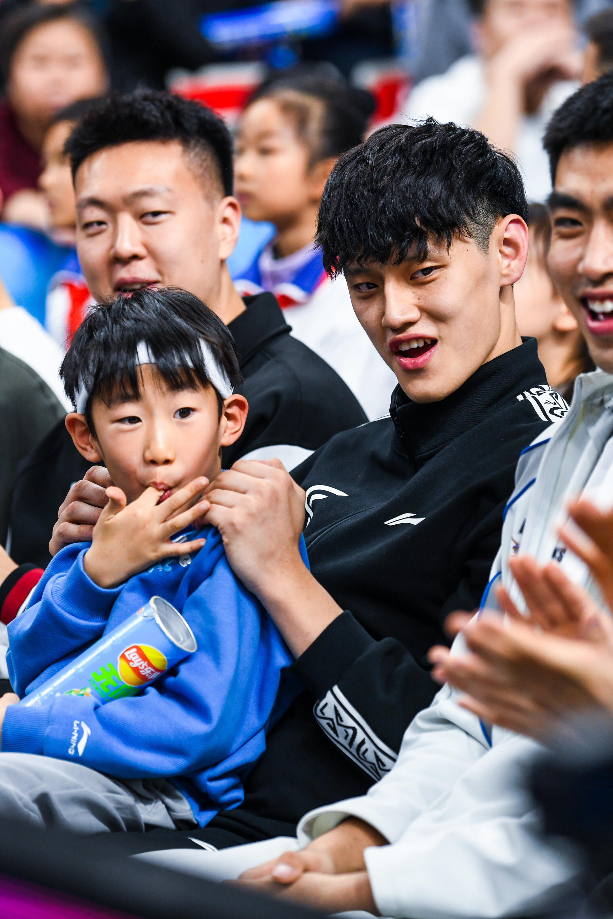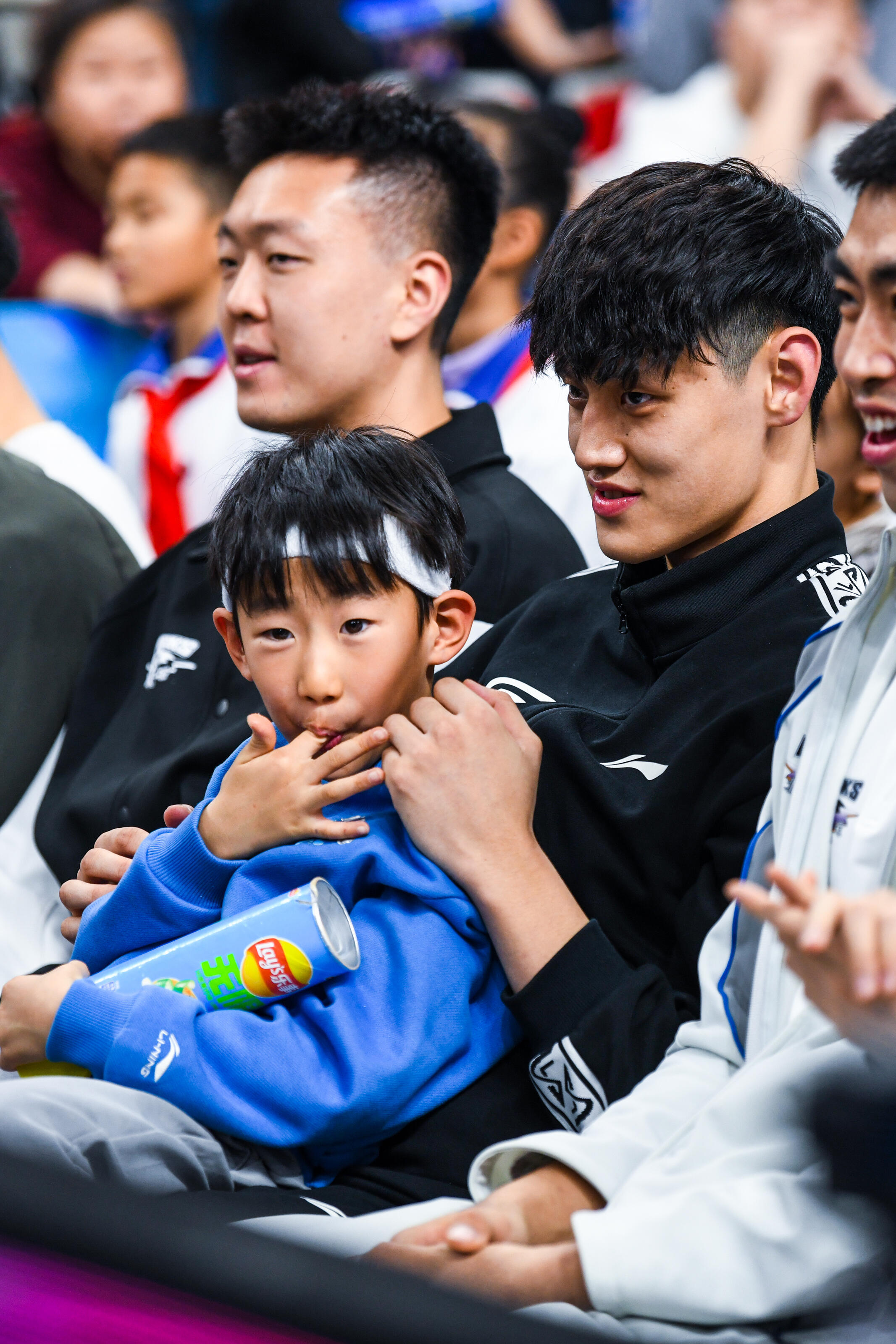 周琦的儿子从小在球场边长大,以后说不定也会成长为篮球运动员。