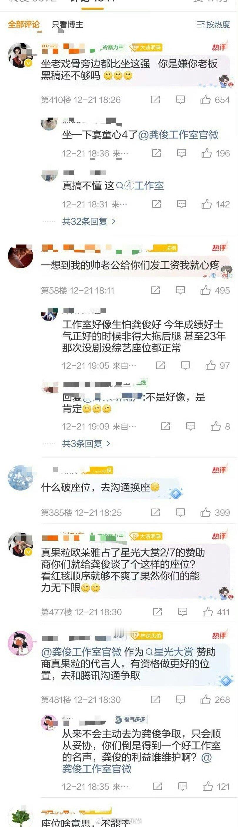 星光大赏内场 粉丝对龚俊的座位不满意了,认为自己流量要更大,这个位置太靠边了