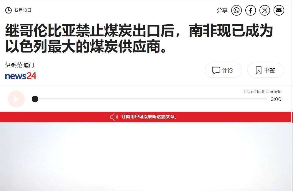 在哥伦比亚停止向以色列出口煤炭后,南非已经取代哥伦比亚成为了以色列最大的煤炭来源国,尽管南非同时是以色列在外交场上主要的对手国之一。