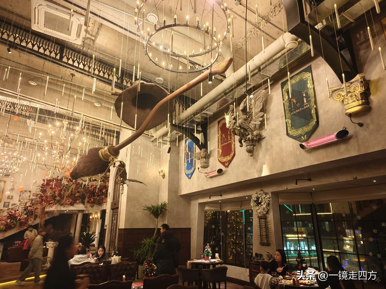 走进长春青怡坊云琅商街的霍格沃茨餐厅,感觉像进入了哈利波特的魔法学校,不少菜品也都配上了魔法元素,连进卫生间都需要打开9又3/4站台的墙壁。