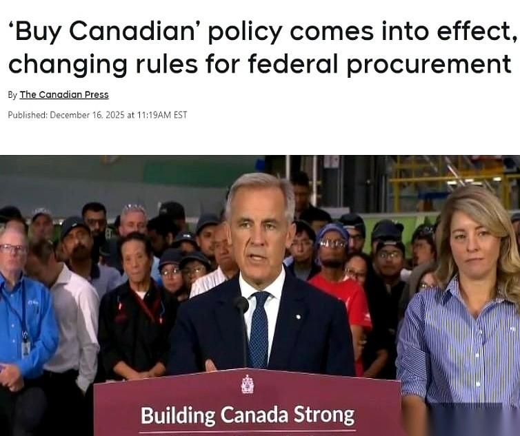 加拿大今天干了件大事。 说白了,就是以后政府花钱,先紧着自己家用。 这叫“肥水不流外人田”。 以前总听人念叨什么全球化,地球村,听着挺美好。结果呢?真到了被人卡脖子的时候,你才发现,关键时刻能靠得住的,只有自己家里那几口人,那几亩地。 前几年贸易战打得噼里啪啦,人家一句话,你的钢厂、铝厂就得喝西北风。这种看人脸色的日子,谁想过? 所以现在这招,我觉得特别提气。 就是明明白白告诉你:那些真正在加拿大扎根的企业,在这儿投资,雇本地人,搞创新,以后政府的大单子,优先给你们。 凭什么?就凭你是我“自己人”。 这事儿说大也大,说小也小。 往大了说,是一个国家开始找回经济上的“肌肉记忆”,重新把饭碗端在自己手里。 往小了说,可能就是你邻居那个开木材厂的朋友,因为这个政策,厂子能活下去,几十号工人的家庭就有了着落。 先把自己的家底盘厚实了,你走出去腰杆才硬。 这逻辑,朴素,但管用。