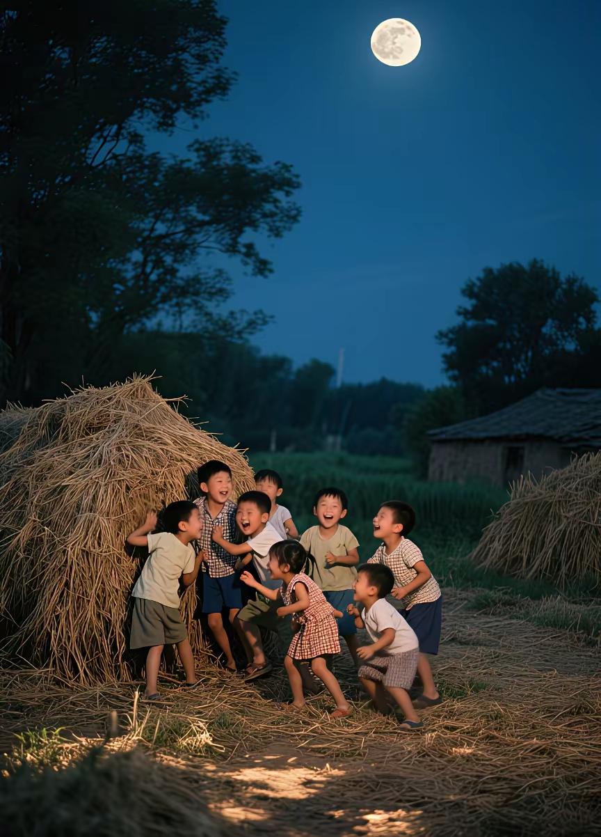 天净沙·孩提旧趣 昔时童稚情多, 两三结队相和。 柴垛瓜田趣播。 迷藏偷果, 稚欢盈满心窝。