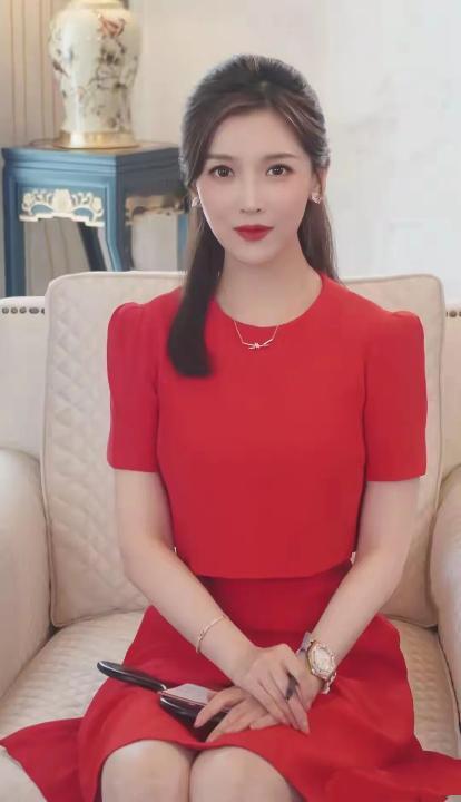 优雅红裙,静坐书房,书香满溢,静谧时光。