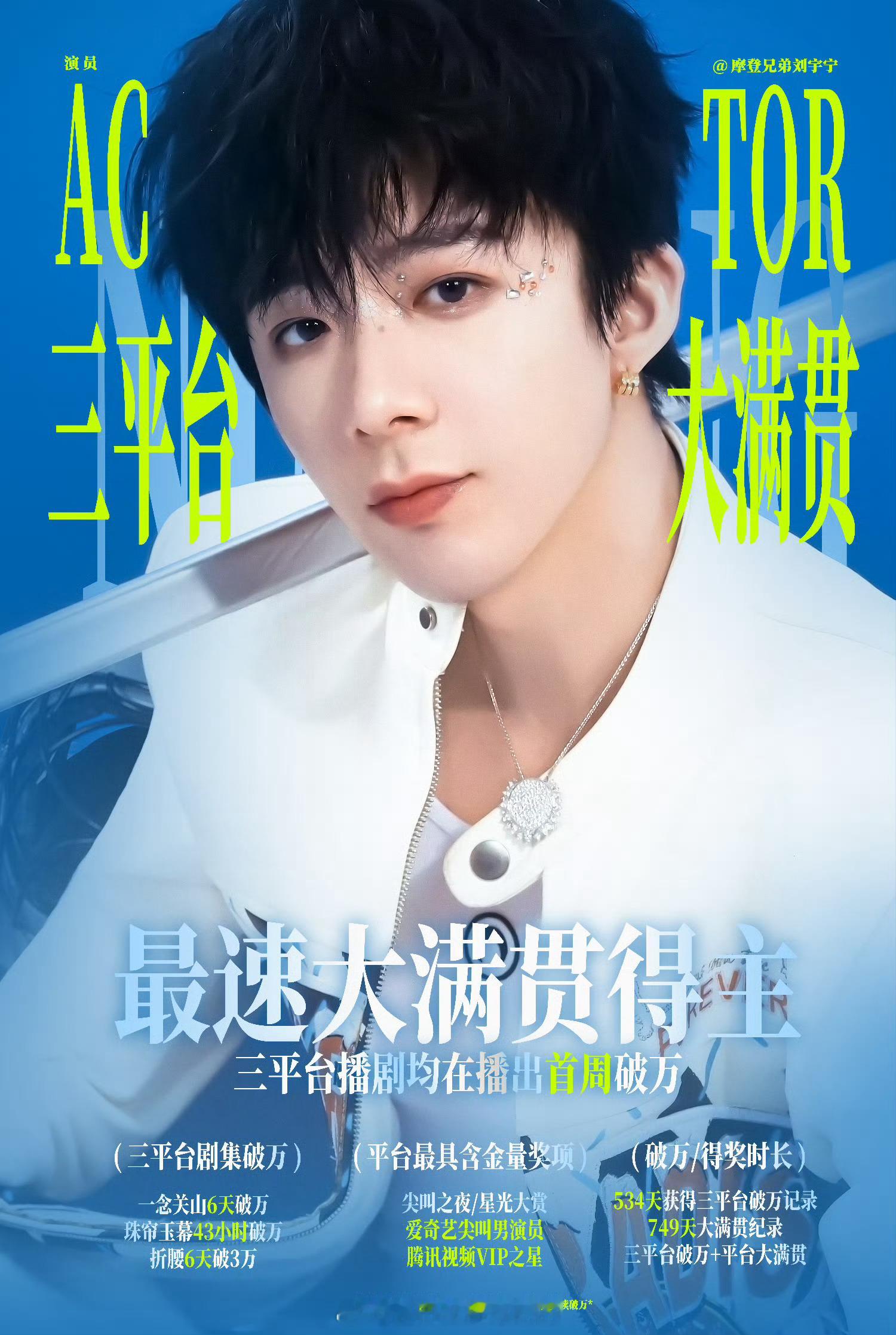 恭喜刘宇宁拿下腾讯年度VIP之星!三平台破万+爱奇艺尖叫男神+腾讯年度VIP之星,史上最快速度三平台大满贯演员诞生!实力与人气双buff叠满,爆款制造机刘宇宁,永远值得!刘宇宁星光大赏