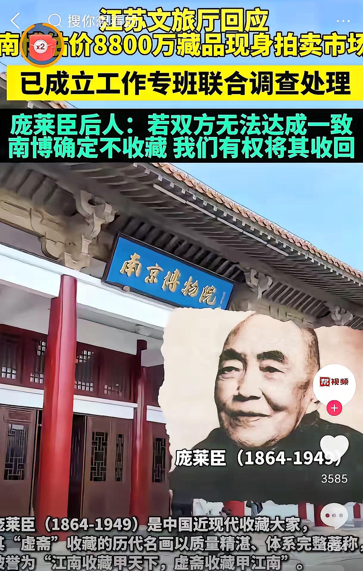 南京博物院不装了,一句“捐赠文物已归国家,本院无义务返还”直接掀翻文物归属争议的台面。 一句轻飘飘的“归国家,无义务返还”,南博说得云淡风轻,却全然无视了当年庞家捧着满腔家国情怀,将世代珍藏拱手捐赠的赤诚与大义。 庞家捧着真心捐了137件世代珍藏的文物,只愿这些宝贝有个稳妥的去处、能代代传下去给人瞻仰,可谁曾想,这些文物到头来竟被南博贴伪作标签,又现身拍卖市场的下场。 虽说法律上讲捐赠的文物归了国家,可私下处置这些文物,怎么能不跟捐赠人说一声?这已经是越权了,捐赠人当然有权知道情况、有权监督。 文物的处置流程,从鉴定、调拨到后续流转,每一步都该清清楚楚地对外公示。毕竟这些文物承载着捐赠人的赤诚与信任,绝不能因为暗箱操作,让那些满腔热忱为国捐宝的人失望又寒心。