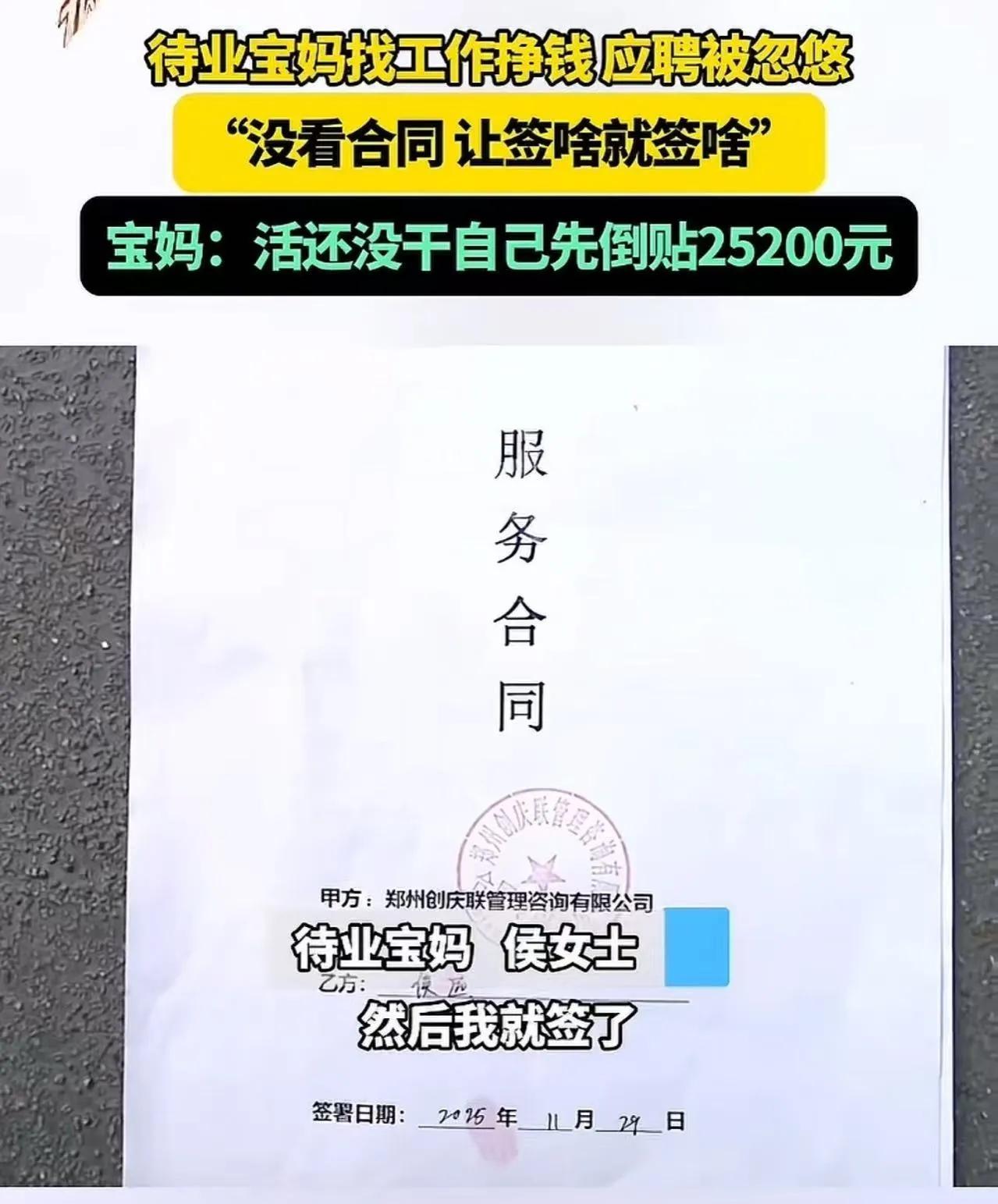 太坑人了!河南郑州,女子想找个工作补贴家用,就去应聘司机,结果活还没干,自己现倒贴25200元!女子:“没看合同,就是骗人的,让我租他们的车给他们当司机,工资也没他们说的这么高!”这到底是怎么回事?看似普通的求职背后,隐藏着多少令人心碎的真相。 我们常常以为,只要努力就能换来更好的生活,但现实却常常用残酷来提醒我们:市场上的“好工作”并不总是那么“好”。这位女子的经历,其实只是千千万万个被套路、被欺骗者的缩影。她原本只想赚点钱,结果却陷入了一个看似“合法”的陷阱。租车、合同、工资……每一个环节都像是精心设计的陷阱,让她一步步陷入更深的泥潭。 然而,令人扼腕的是,这样的事情并非个案。近年来,类似的“黑中介”、“套路公司”层出不穷,令人防不胜防。它们利用人们对生活的焦虑、对未来的渴望,设下陷阱,最后收割的却是最普通百姓的血汗钱。这背后,是制度的漏洞、监管的缺失,更是社会诚信的缺失。 此刻,我们不得不问:我们在追求梦想的路上,究竟丢失了什么?是对利益的盲目追逐?还是对规则的漠视?更令人担忧的是,这样的“骗局”,是否在无声中侵蚀着我们的社会底线?当诚信变得稀缺,善意变得稀少,我们还能相信什么?能相信彼此吗? 而作为普通人,我们又该如何自我保护?面对复杂的职场环境,面对那些看似“天上掉馅饼”的工作机会,是否应该多一份警惕、多一份理性?或许,我们不能完全依赖所谓的“中介”、“平台”,更要学会用自己的眼睛去筛选,用法律的武器去维护权益。只有这样,才能在风云变幻的职场中,少一些被骗的无助,多一些自我保护的底气。 这件事情告诉我们:生活不易,市场复杂,但只要我们心怀正义,保持清醒,就一定能在迷雾中找到一条明路。希望每一个像她一样的普通人,都能早日拨开阴影,迎来属于自己的光明。因为,只有站在阳光下,才能看得更清楚,也才能走得更远。 你是否也曾遇到过类似的“陷阱”?又或者,你对如今的求职环境有怎样的看法?欢迎留言分享,让我们共同为守护每一份诚实与善良努力!司机的骗局 应聘司机被骗 司机求职套路