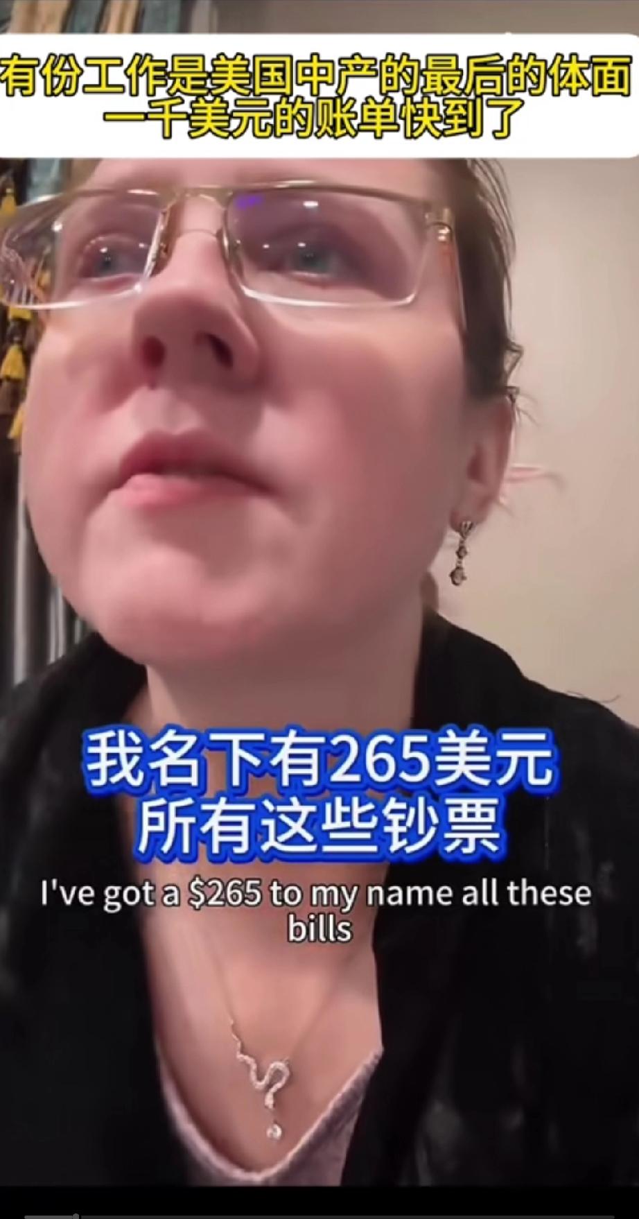 一名美国妈妈在社交媒体发视频,说自己没没有钱了,自己的名下加起来还剩下265美元的现金,而自己的电话费就要250美元,刚刚又给自己的儿子寄了35美元(除去5美元的手续费,只有30美元能够到儿子手上,),如果不给钱可能孩子连牙膏牙刷都用不上了!更难的是她名下1000美元的账单也马上就要到期了! 她继续诉苦,因为自己没钱了,自己的狗连狗粮都买不起了,所以她为了省钱已经好几天没有吃东西了! 美国普通人真是不知道存钱过日子啊!